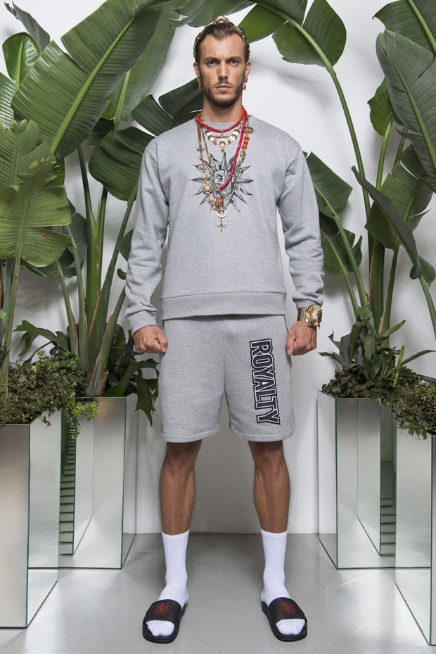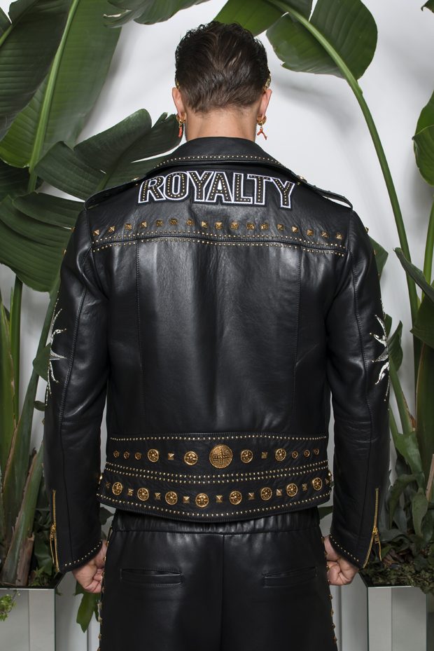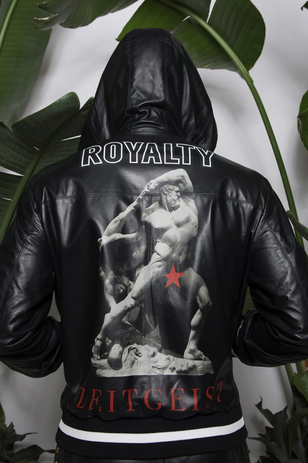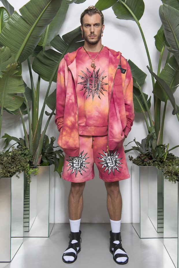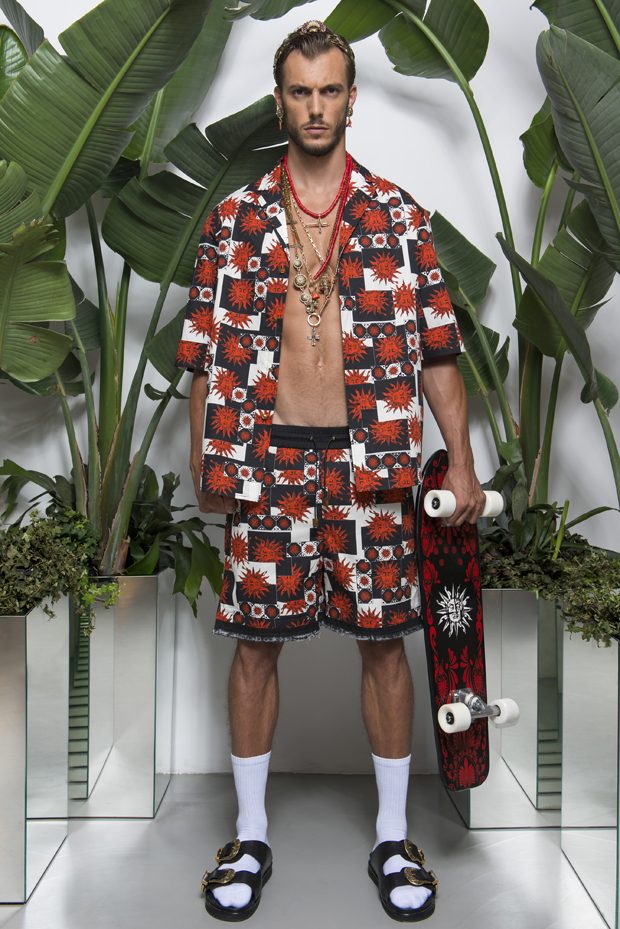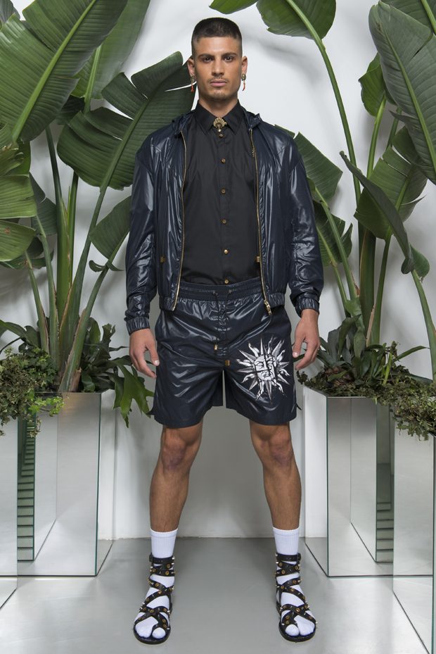 Discover Fausto Puglisi’s Spring Summer 2018 collection presented during the Milano Fashion Week. Combining the ancient Rome and Greece influences with the hip-hop and streetwear, the collection features leather bombers, motorbike jackets and nylon windbreakers, as well as baggy shorts and relaxed silhouettes, decorated with the designer’s Baroque graphics.