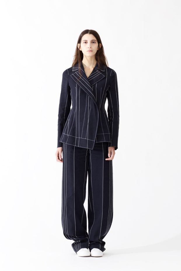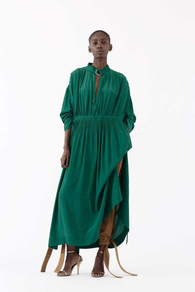More than ever for the designer, masculine and feminine, flowing fabrics and ergonomic cuts, organic and graphic, nonchalance and sophistication, cease to be opposing notions. He reconciles them to achieve pure elegance, devoid of any ostentation, clear ideas coupled with confident gestures. His credo has never varied by one iota: clothing must enhance the man or woman who wears it, and not the other way around. Todd Knopke’s work, Felipe, is the starting point of the collection. It shows a slightly worn out pink foam armchair, over which a golden shawl drapes in elegant wavelets. Here again, we find the Charlier spirit, his concept of elegance where God is in the details. – from Cédric Charlier
