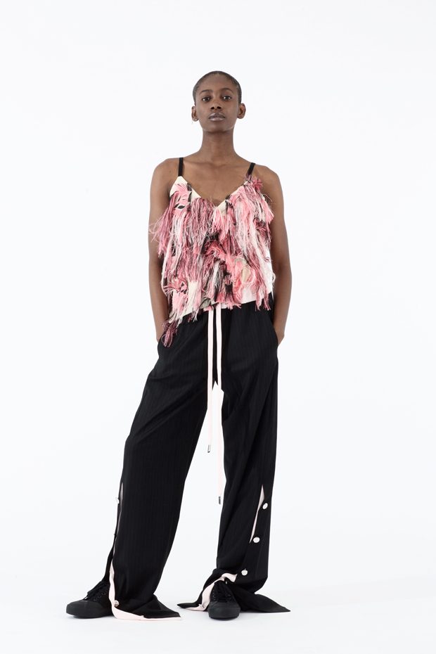 Belgian designer Cédric Charlier presented both Women’s and Men’s Spring Summer 2018 collections at his atelier on the Rue de Sévigné during the Paris Fashion Week. Inspired by the artist Todd Knopke’s work, Felipe, the collection is both casual and graphic.
