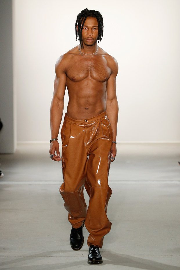 “SADAK’s new collection is a celebration of diversity and sartorial contradictions, blending the appeal of 1990s subcultures with the beauty of formal tailoring and timeless sportswear. Entitled “Slave Sauvage”, the collection operates a surprising encounter between the dominant and the oppressed, the margins and the mainstream, the subversive and the classic. Slavic and Western-European elements are mixed freely within the line and garments express a desire for cross-cultural encounters, evidenced by the designer’s careful reinterpretation of utility workwear.“