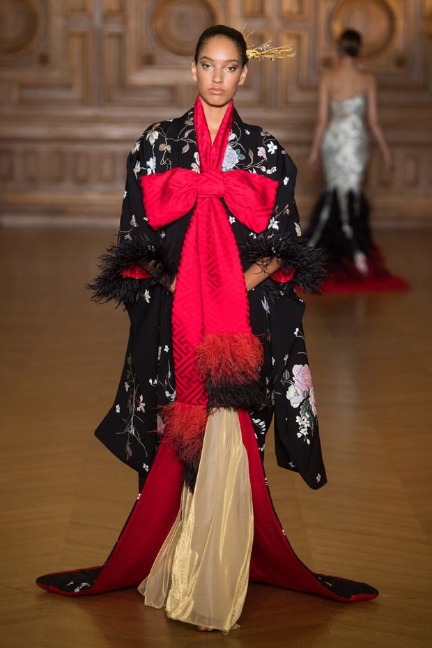 Japanese designer Yumi Katsura unveiled her Fall Winter 2017.18 The Awakening of Nature collection, inspired by two artists Kiitsu Suzuki and Sotatsu Tawaraya, during the recently finished Paris Haute Couture Week.