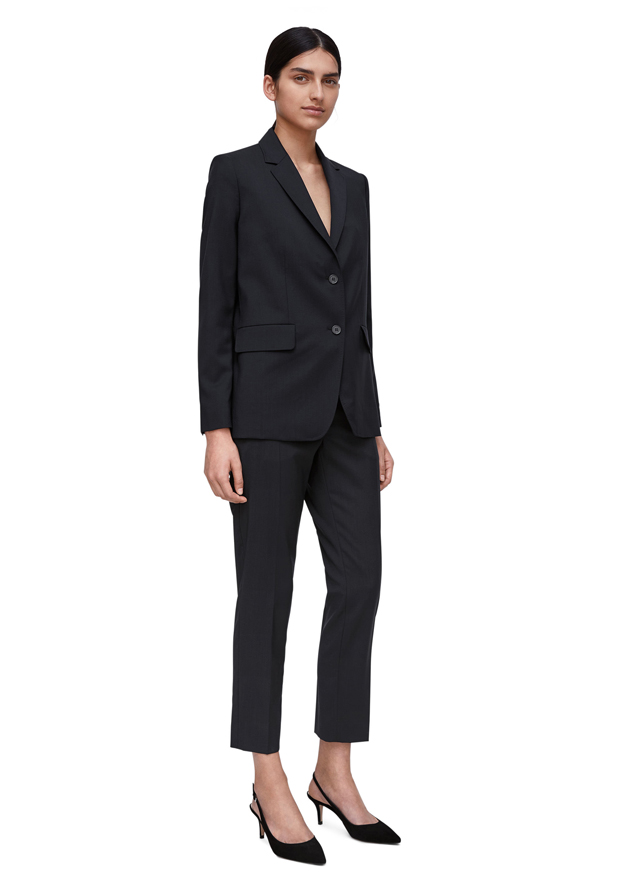 A straight-fitted blazer and pants cut in a lightweight wool poplin weave, produced by an Italian mill.