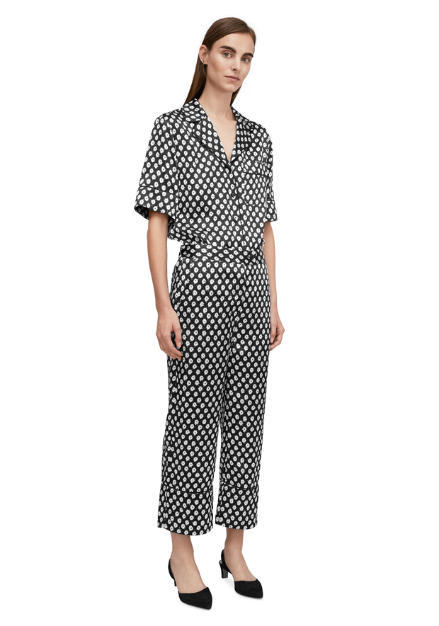 Slick and comfortable, this pyjama-inspired set is cut from solid-weight satin that gives a beautiful drape and has wrinkle-resistant properties. The all-over floral pattern is an original mid-20th-century print.