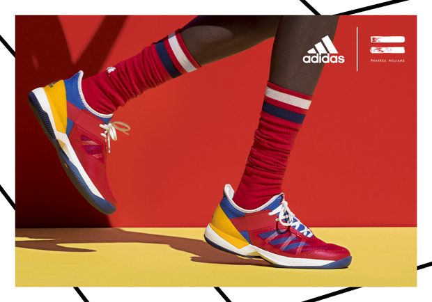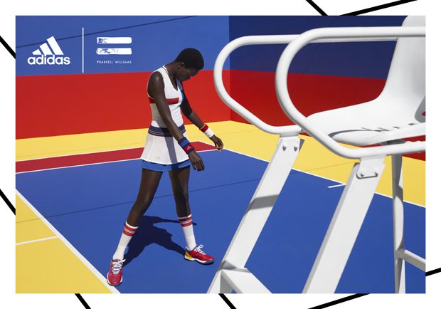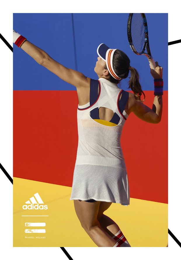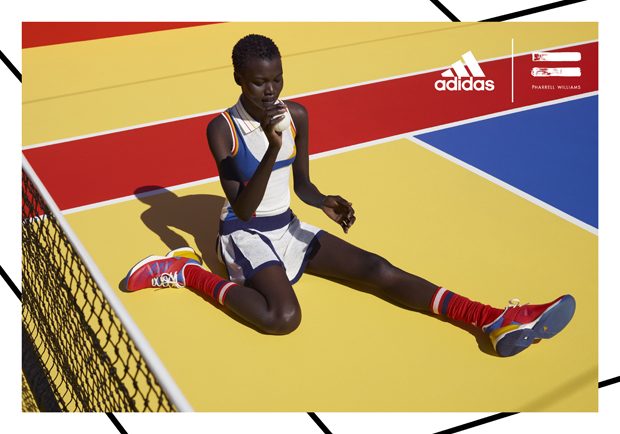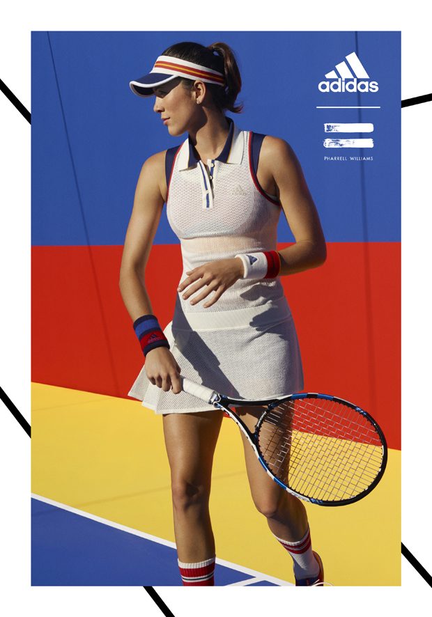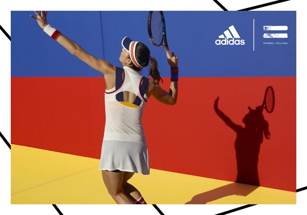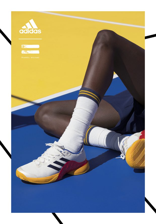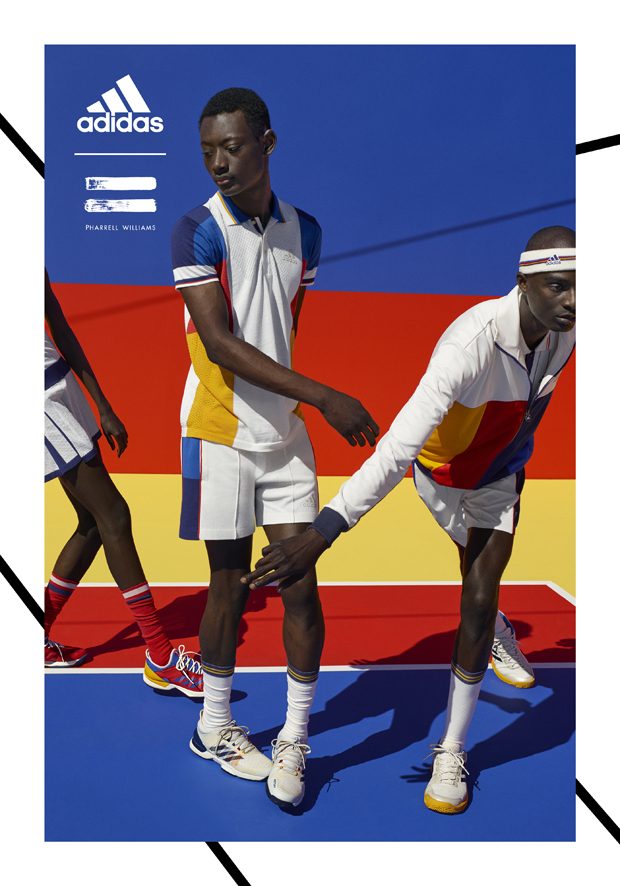 adidas Originals collaborated with Pharrell Williams on the Fall Winter 2017 tennis collection, inspired by the golden era of tennis. The range features clothing, accessories, and footwear inspired by the personal style of the sport’s ’70s-era legends. The campaign features models as well as tennis athletes Sascha Zverev and Garbiñe Muguruza.