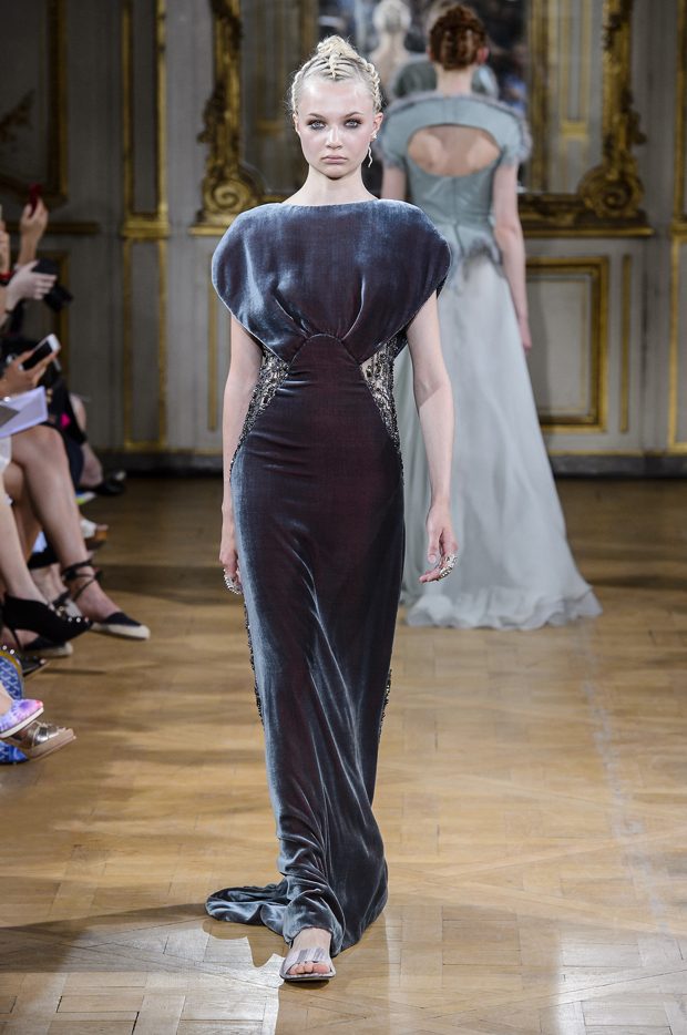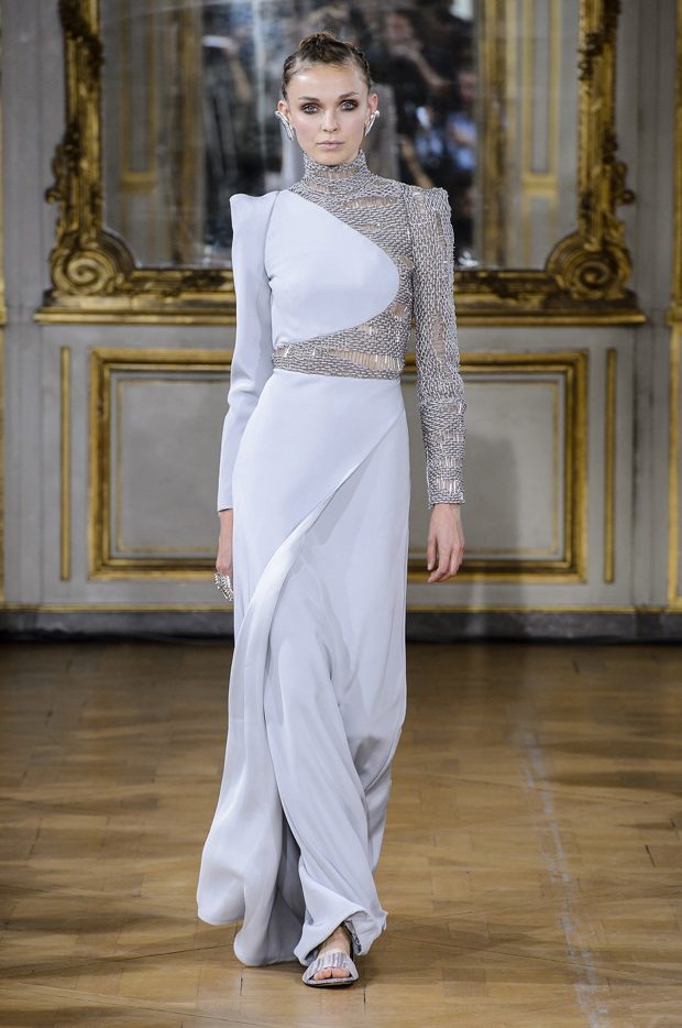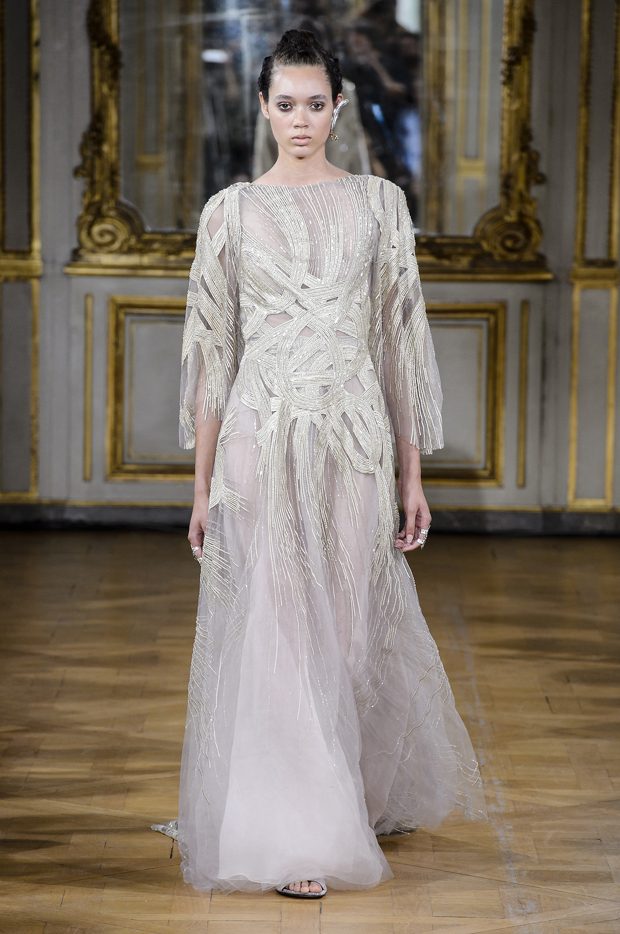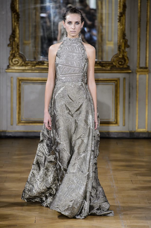 Discover Antonio Grimaldi’s Fall Winter 2017.18 Haute Couture collection presented during the Paris Haute Couture Week in Mona Bismarck American Center. Inspired by the paintings of the Norwegian artist Peter Nicolai Arbo, the collection recalls the mythological Valkyrie, where the models become contemporary goddesses who love playing with couture.