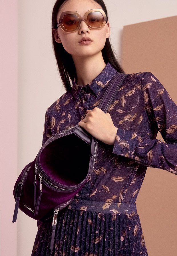 The individual influences can be also found in its accessory choice, for example bags that are provided with eye- popping graphic stripes or in blue and purple colour blocking. Some bags are even made of plush which expresses pure joie de vivre. It is made for the woman that does not take herself nor her dressing too seriously. The shoe choice reminds us of the ’70s, with calf- high platform boots and plateau pumps.