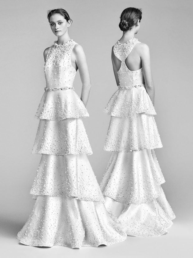 After debuting their Bridal Collection last fall, Viktor & Rolf presented their marriage offering prepared for Spring 2018. Featuring V&R’s signature handmade flowers, layers of pleated tulle and oversize satin bows, the collection offers a plenty of different looks, from very minimal to princess-like.