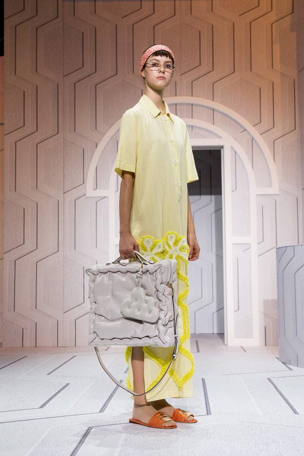 “I’ve used new techniques and materials to find the extraordinary in the ordinary and the joy in the everyday, including modern interpretations of 70s housecoats, prints inspired by Anaglypta wallpaper and a luxurious reinterpretation of a take-away box.” – Anya Hindmarch