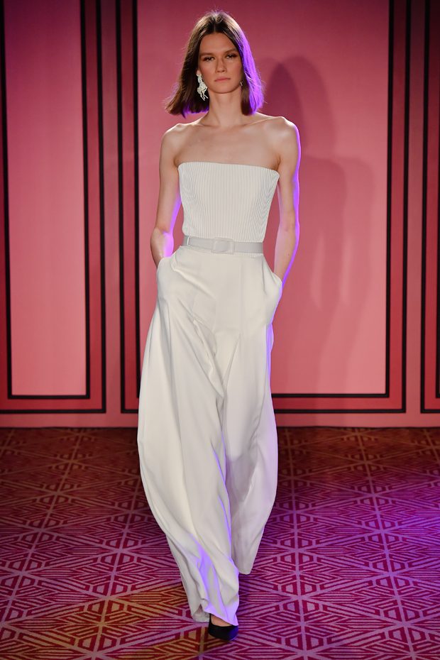 Brandon Maxwell presented Spring Summer 2018 collections during New York Fashion Week. Replacing his signature black and ivory composition with a diverse color palette, Maxwell completed his show with a seamless transition from day to night.