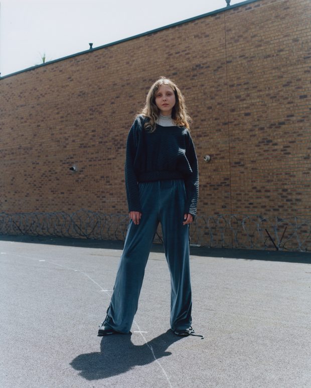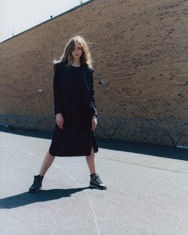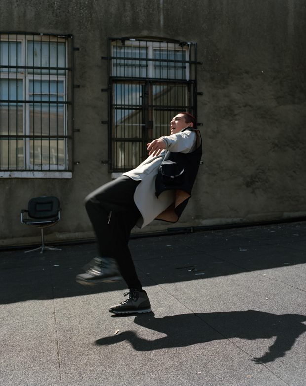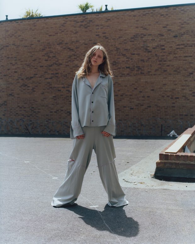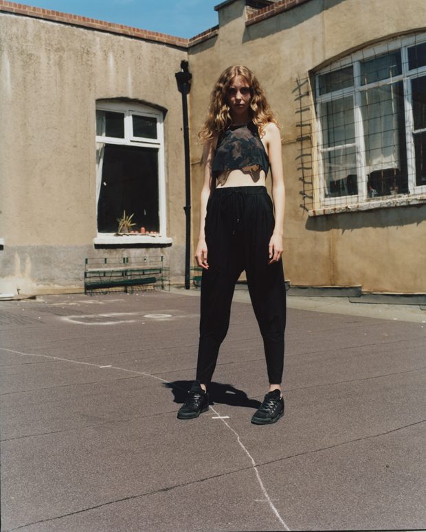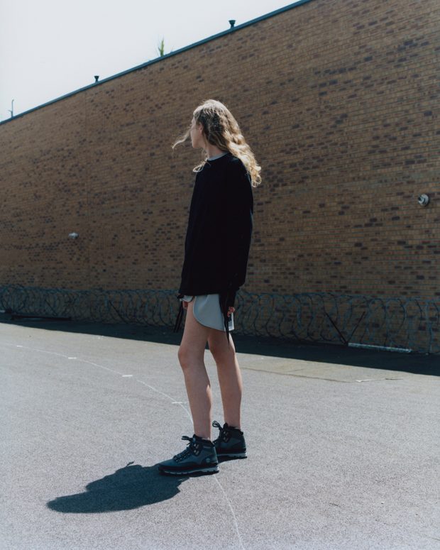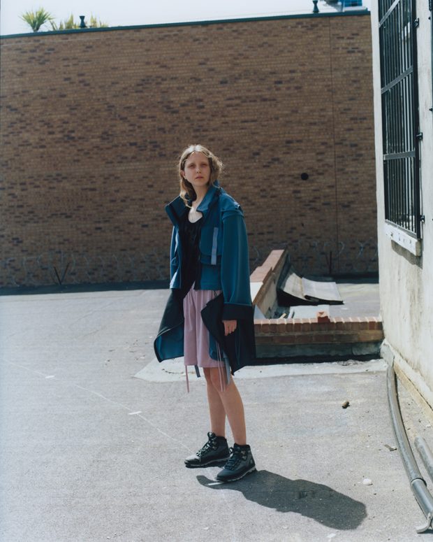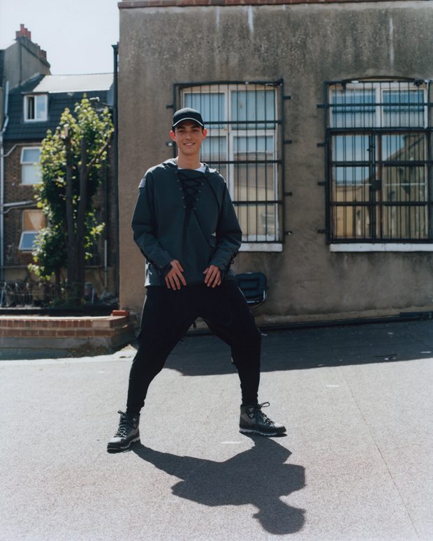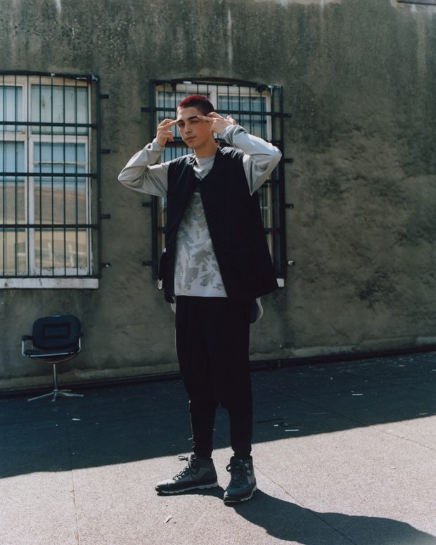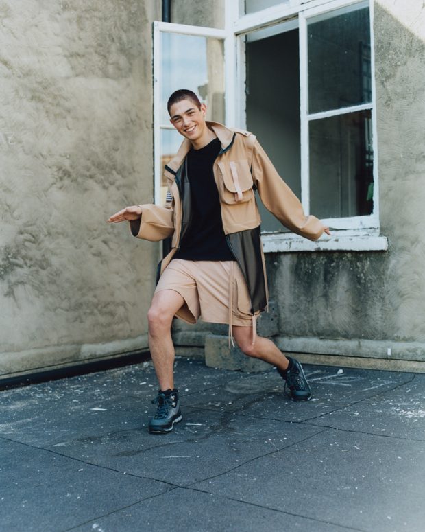 Charli Cohen present the spring summer 2018 ready- to-wear collection in London. The collection, a Men’s + Unisex, consists of a dark color palette while some pieces are more bold, in different shades of pink, red and beige. The garments have a baggy silhouette with drawstrings hanging off them.