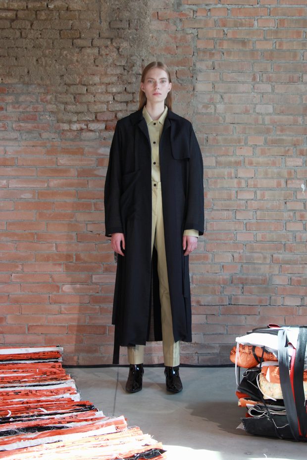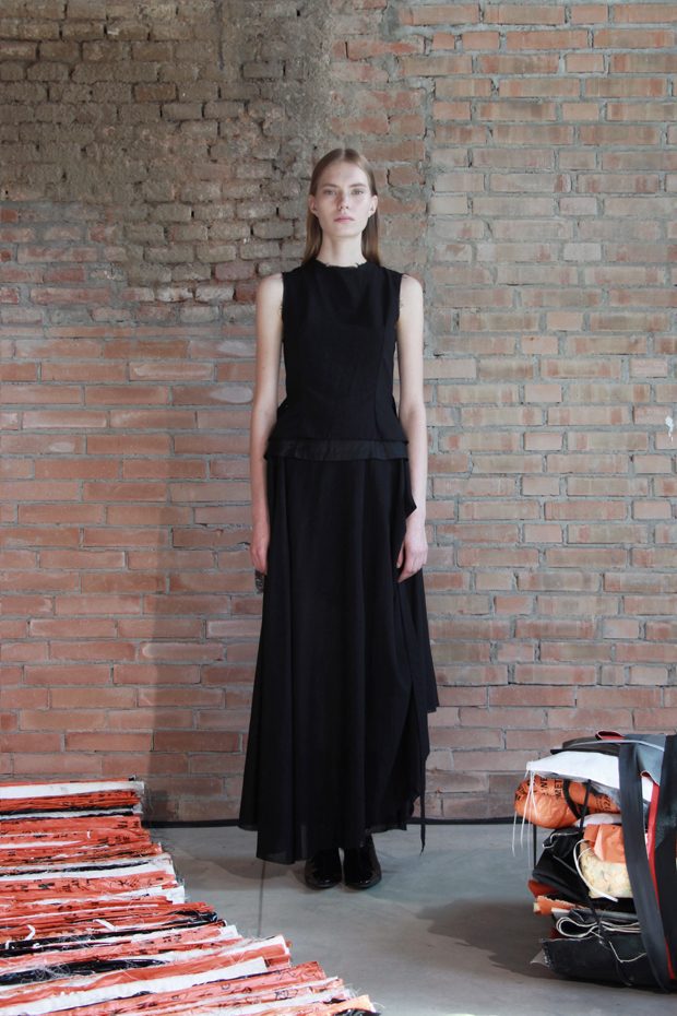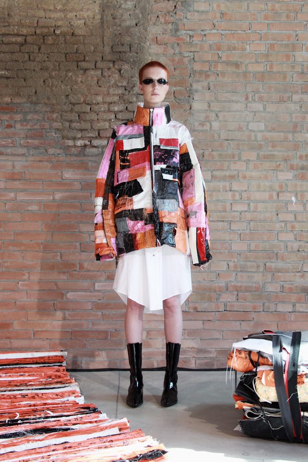 Tommy Zhong presented the spring summer 2018 collection in collaboration with artist Nadine Shaban. The collection is built on the complementary facets of differences. Shaban’s use of material inspired the collection.Drawn from industrial sources used to bind the psyche, the collection allows textile surface manipulation to fashion emotions into physical forms. Conflicted between the lure of classic and contemporary artists, this season’s muse has free reign to explore the limits of her self-sufficiency. Eveningwear separates and casuals, in classic and relaxed lines, padded and pinched, represent a tactile journey of introspection.