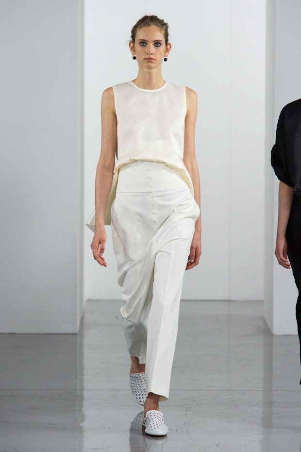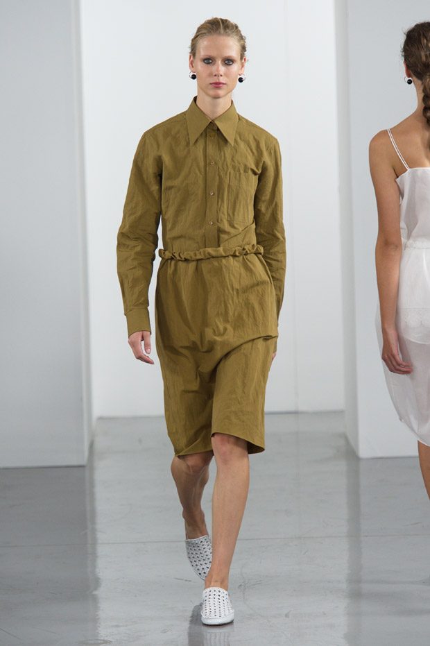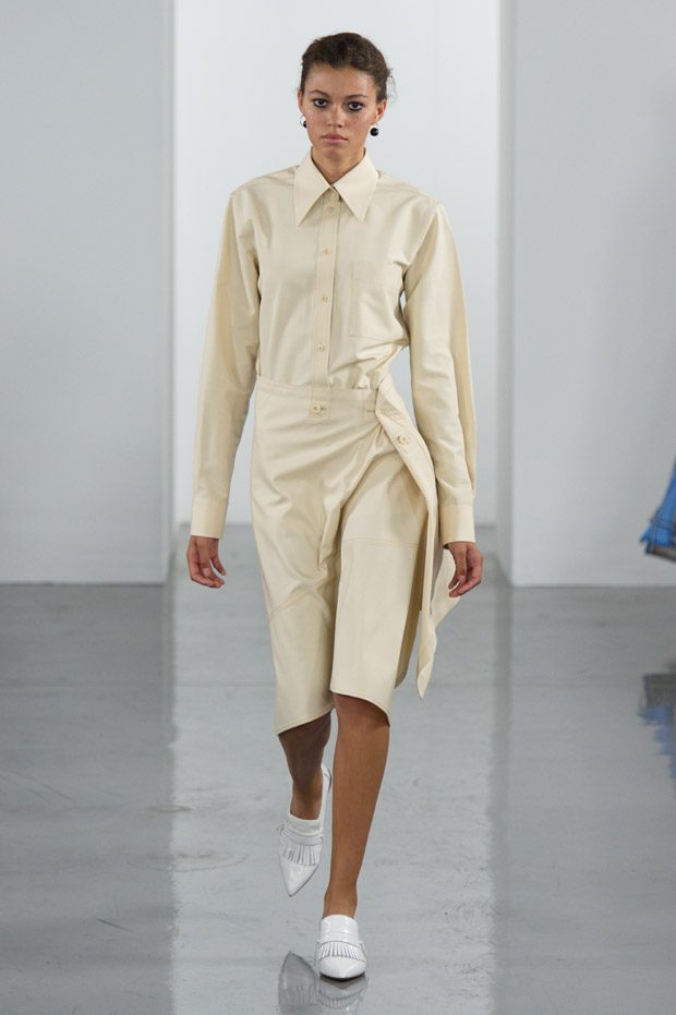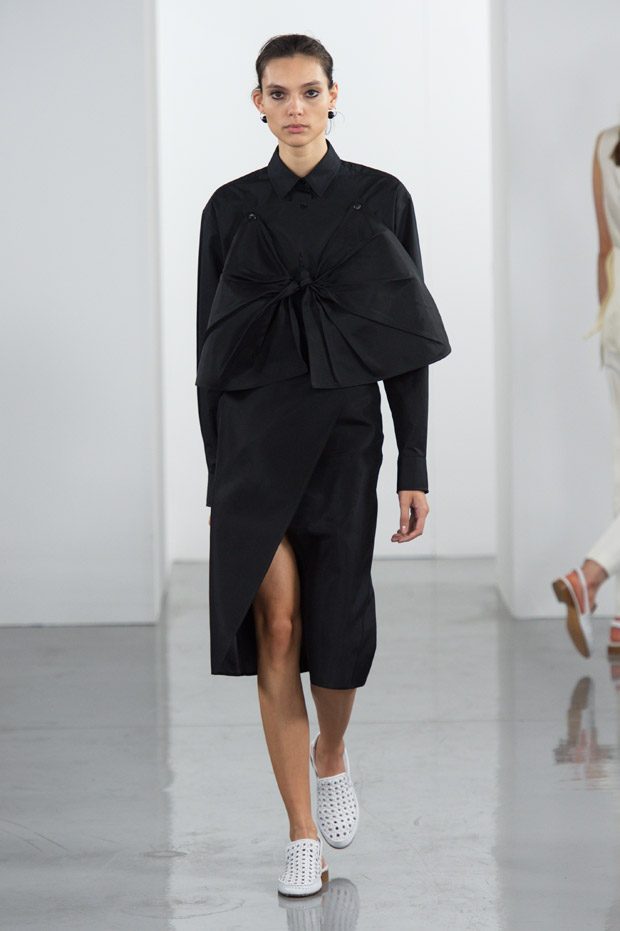 Evocative of a sense of movement and change, clothes offer wearers the opportunity to transform. Panels button on and off, hems are wired to roll, garments can be reversed. Each outfit allows the wearer a chance to compose their look – everything is individual.“