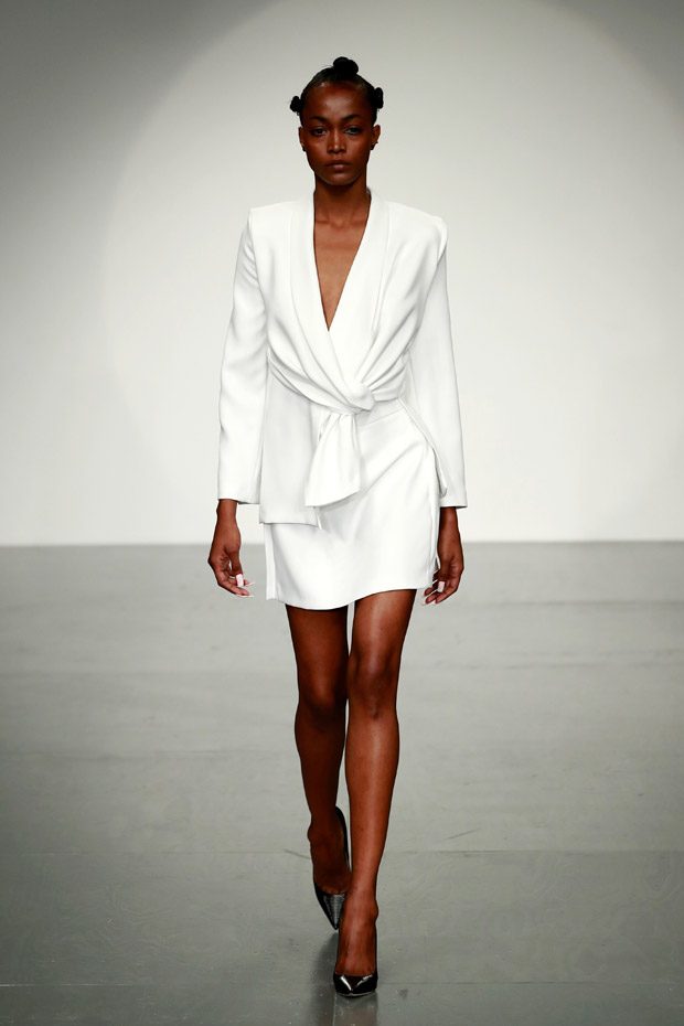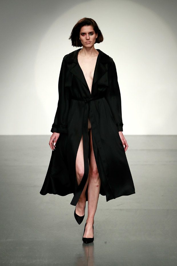 Sharp-cut leatherette gives a sculptural dimension to staples such as ankle skimming trench coats transforming them into a uniform for the contemporary woman and eveningwear is reimagined in experimental proportions and volume to create sensual fabrics that criss-cross the body, wrapped and twisted around the torso.“