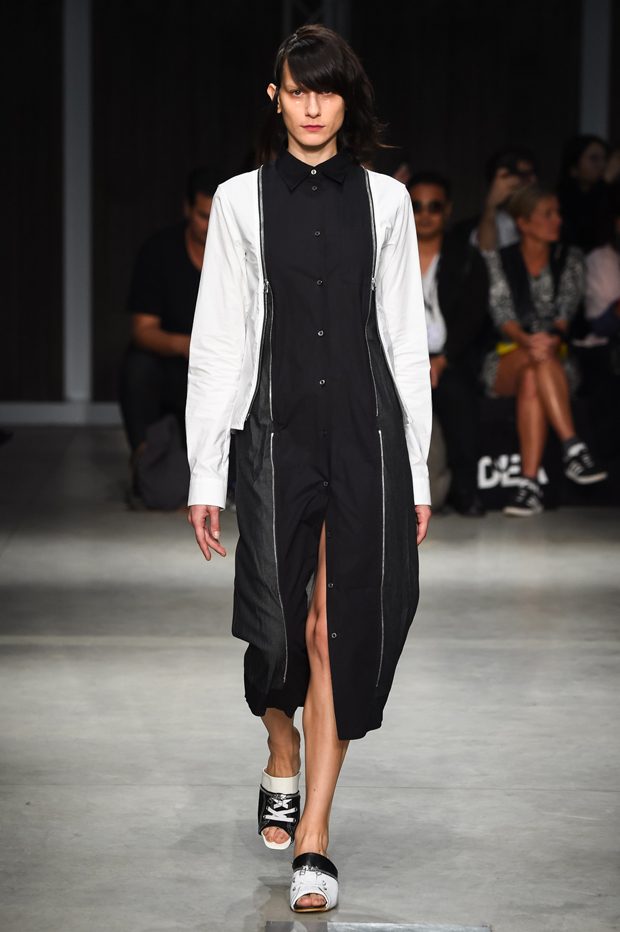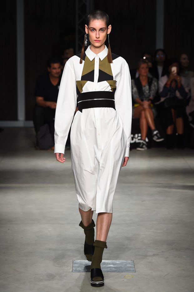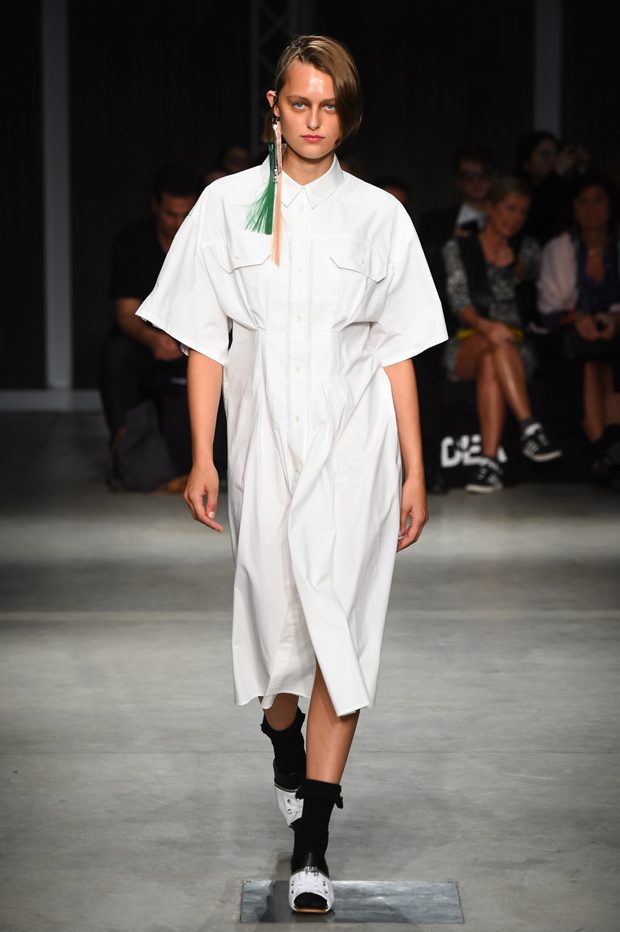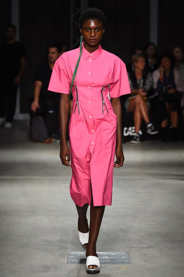 Atsushi Nakashima presented his spring summer 2018 collection at Milan Fashion Week. Trench coat as a key piece and a more neutral color palette with a few bold pieces in pink, yellow and royal blue and zipper detail composed the collection.