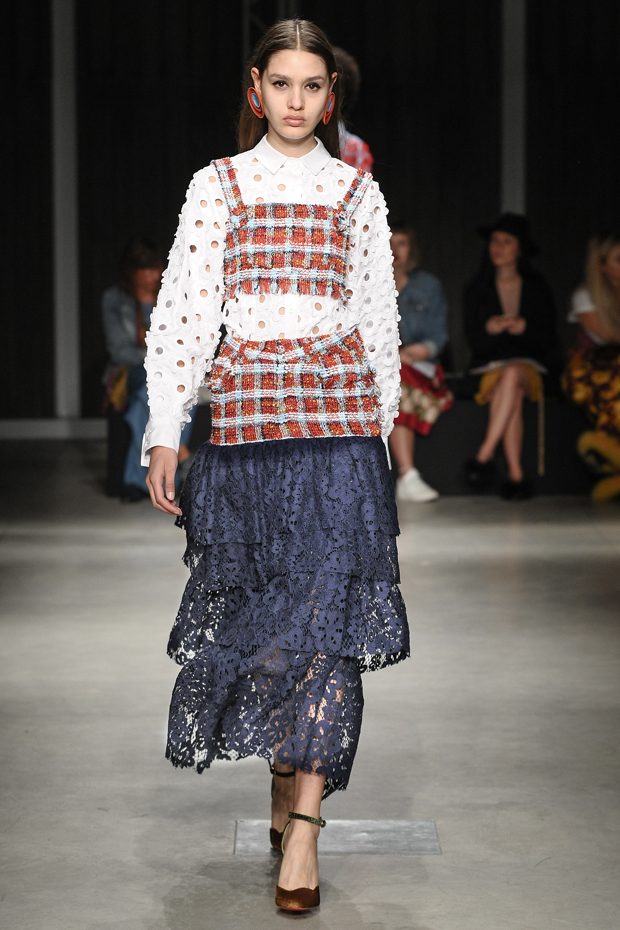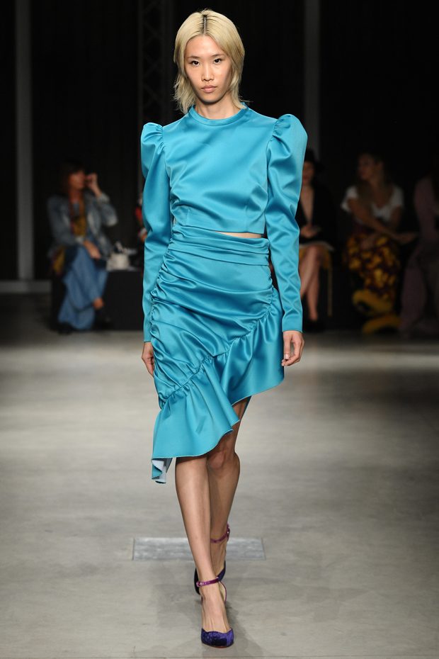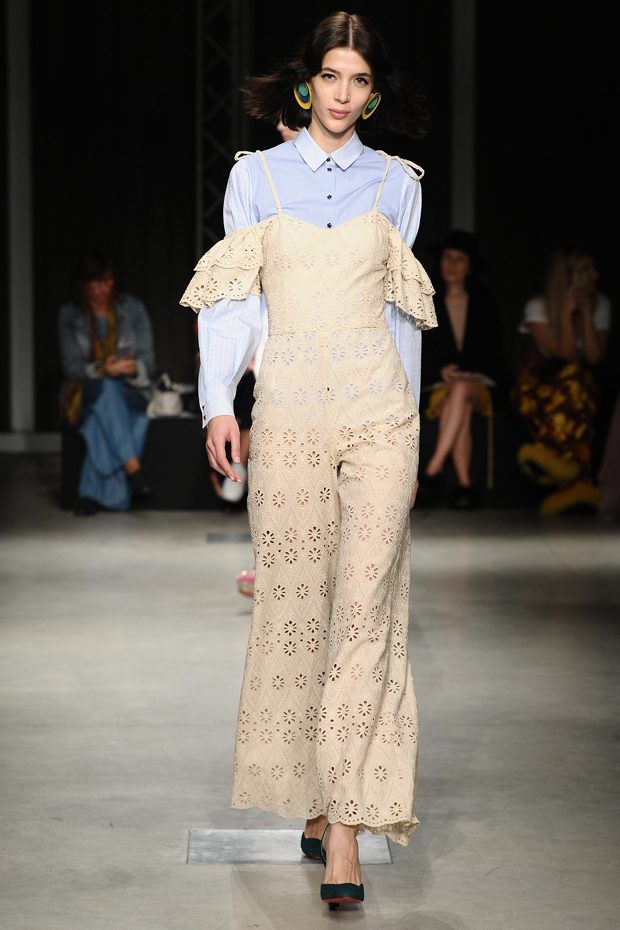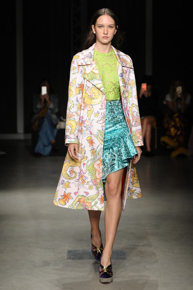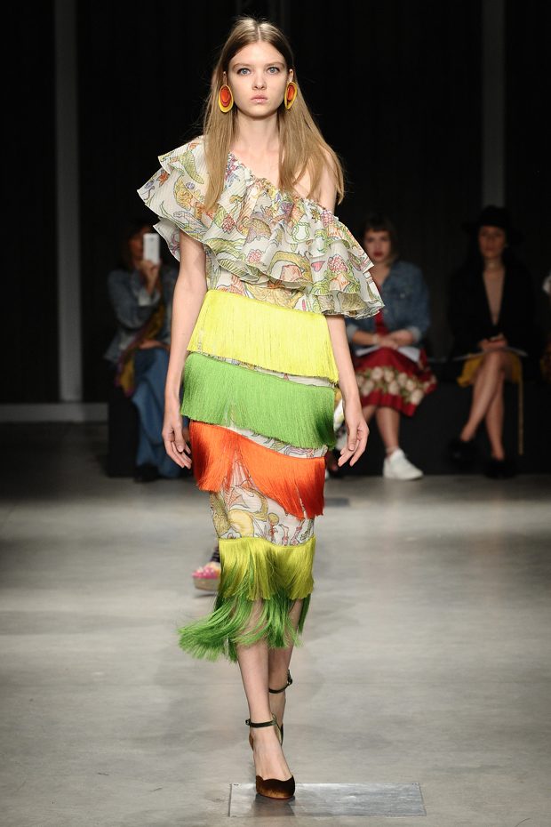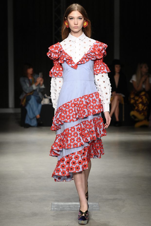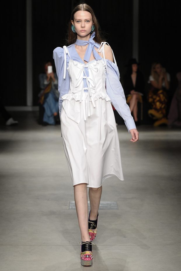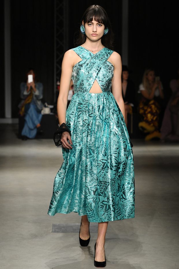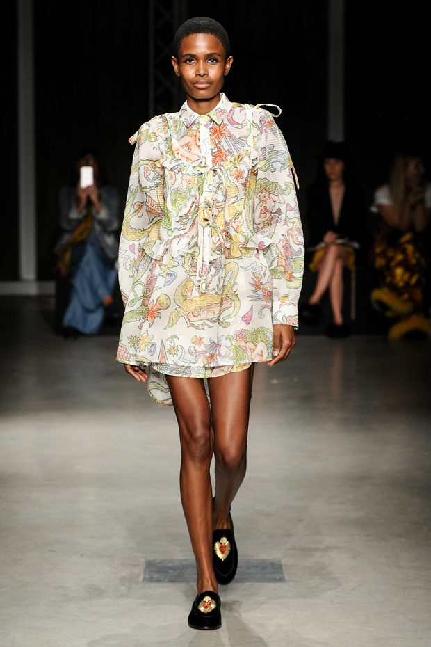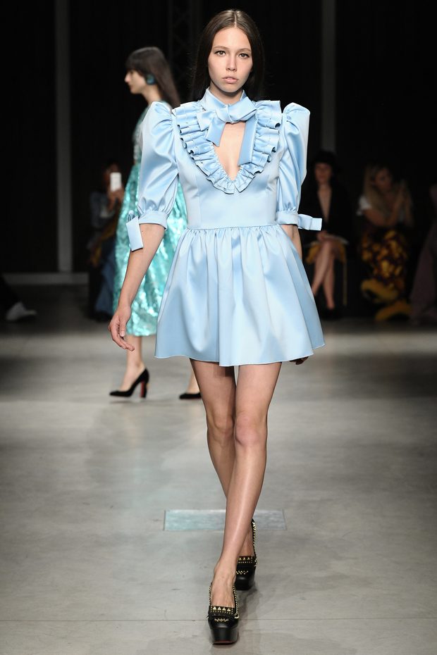 Daizy Shely presented her spring summer 2018 collection at Milan Fashion Week taking inspiration from “the love that elates us yet makes us vulnerable, in accordance with Freud’s theory, building a collection based on contrasts, on the unstable equilibrium, on shadows that darken the light, on things that are not always as they seem. Eros and Thanatos, a compulsion for life and a compulsion for death. Two instincts that dominate human beings’ lives and inevitably tend to contrast each other in an eternal battle that threatens our search for happiness.”