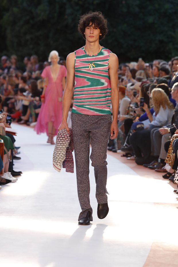 Missoni presented the men’s and women’s collection together for the first time in this unique spring summer show at Milan Fashion Week. The collection was sophisticated yet festive with diverse silhouettes. 20 years as creative director, Angela Missoni wanted to celebrate with this collection. “A party where the most distinctive, sensual, and spectacular traits of today’s Missoni style meet and celebrate.”