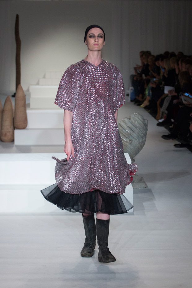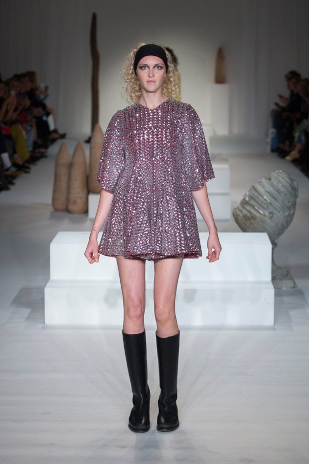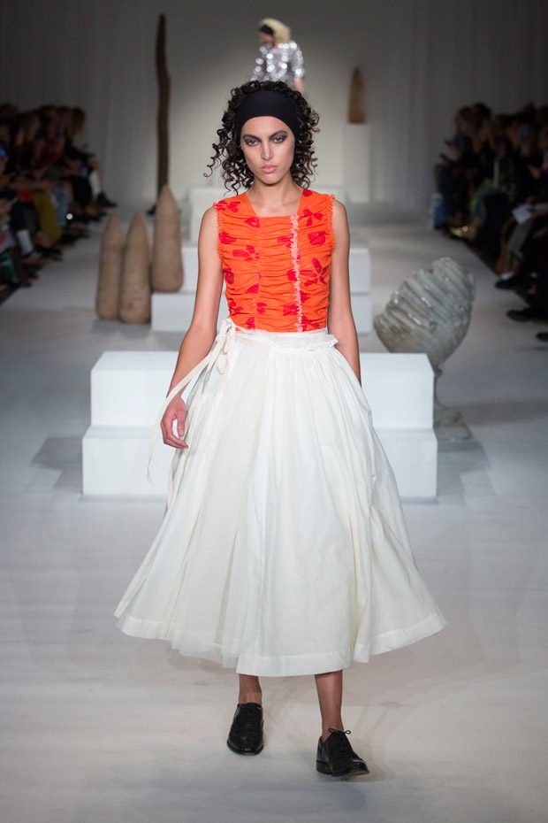 A refreshed focus on detail and craft forms the basis of the collection. Silhouettes are refined through cutting and contrasting weights—densely gathered cotton, sequins, and sport taffetas are elevated through new methods of manipulation.“