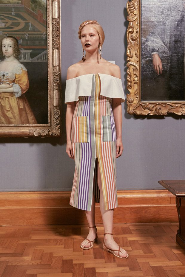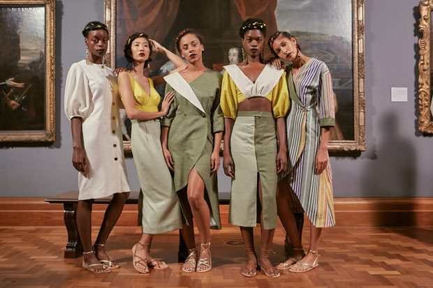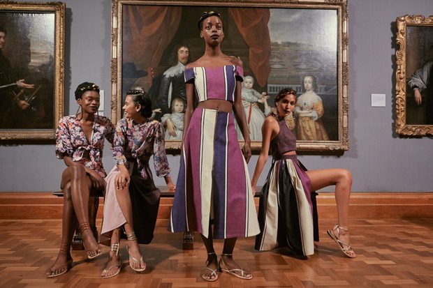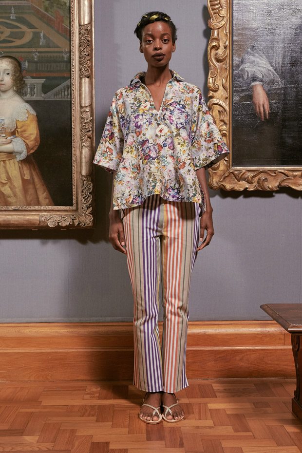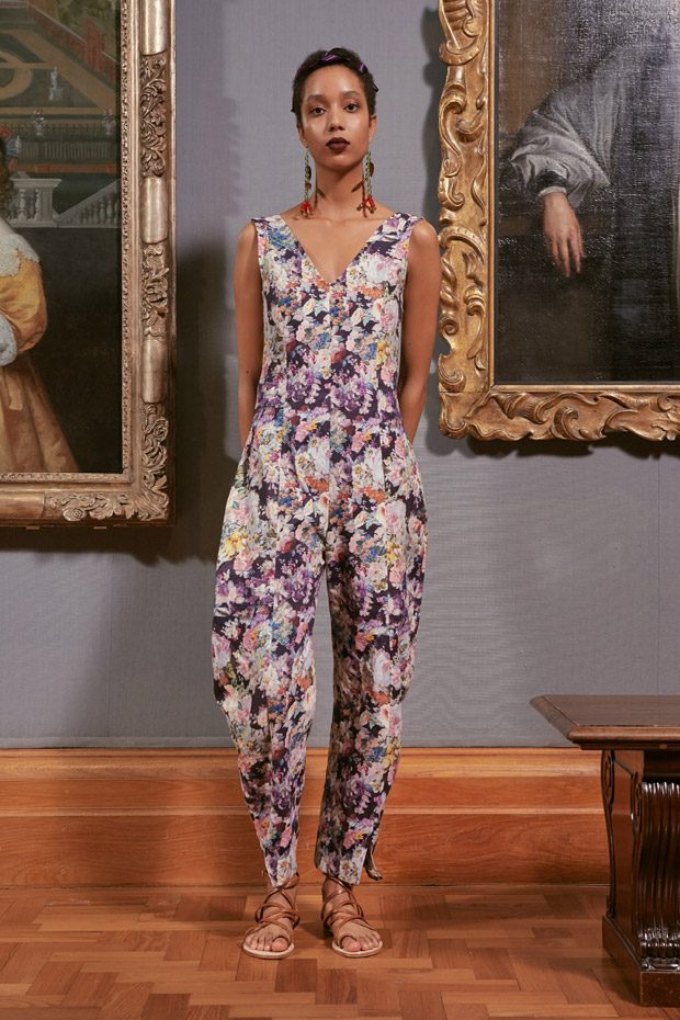 The colours in the collection are an exploration of summer – blossom, lemongrass, sage, aubergine, saffron, and pearl are worked into easy separates, popover dresses, vintage-style jumpsuits and skirted shorts often seen on American boardwalks.“