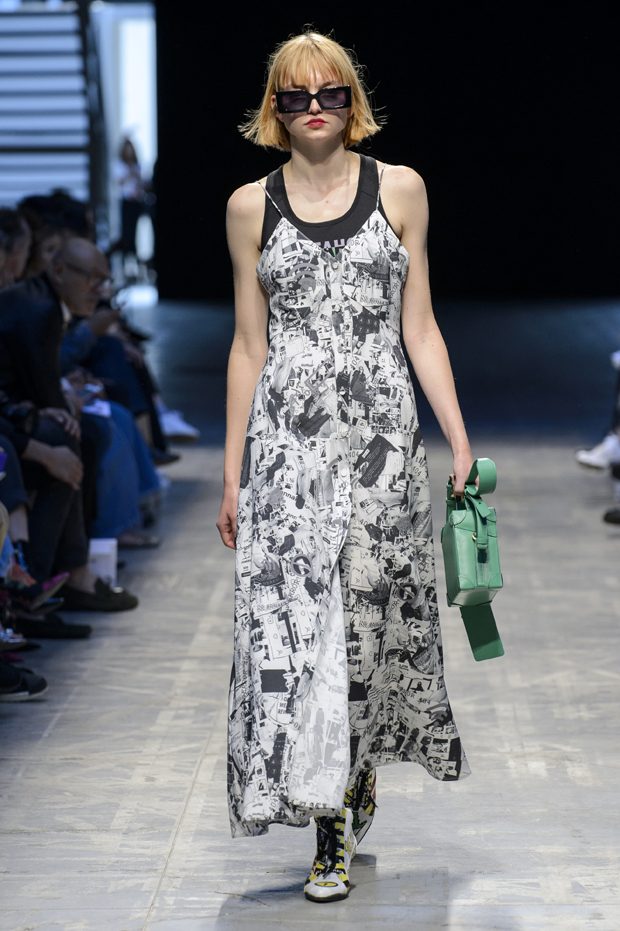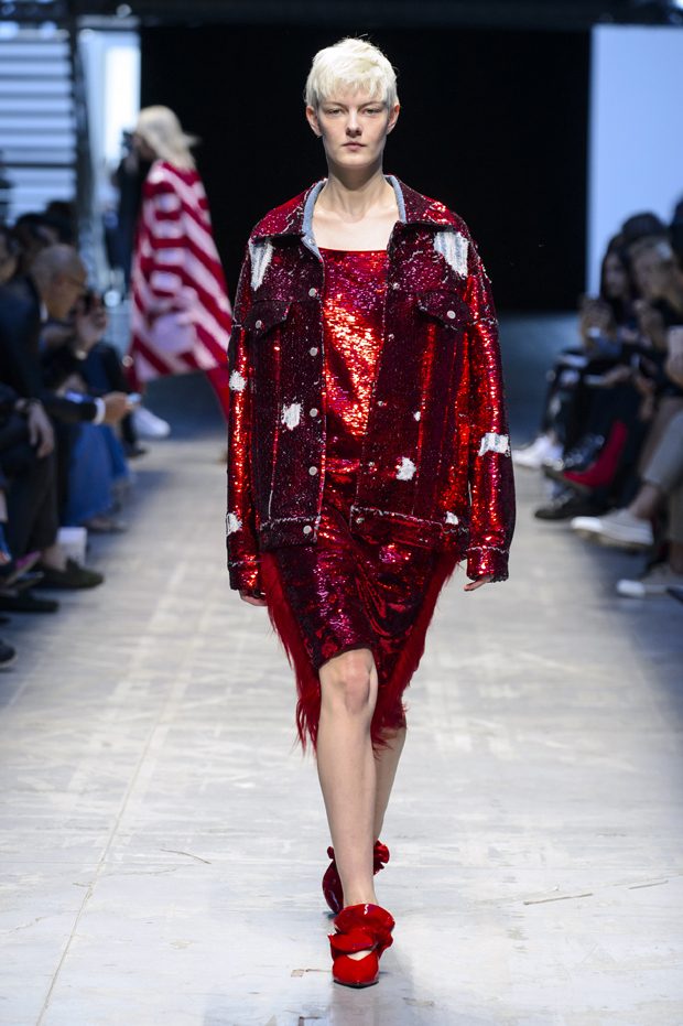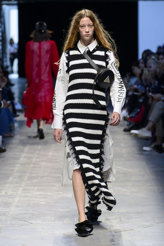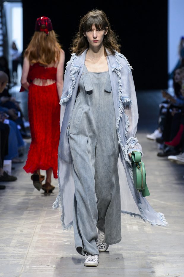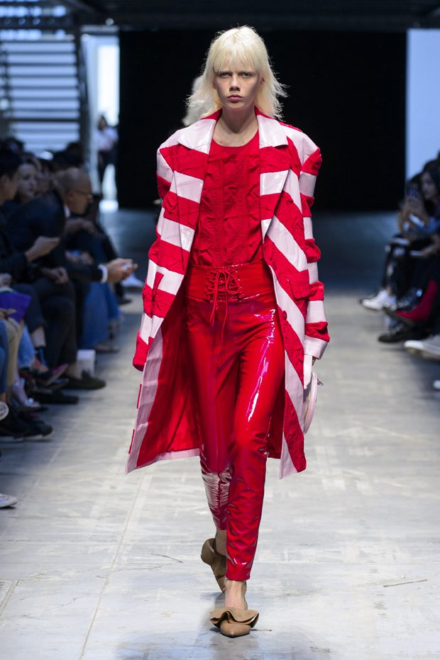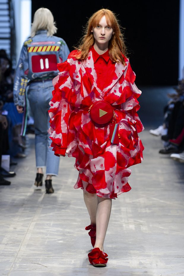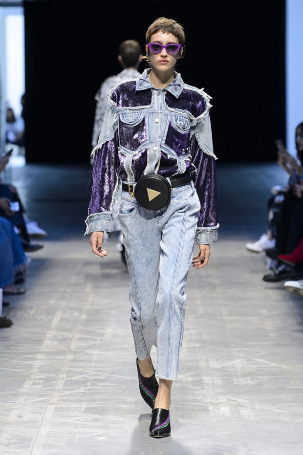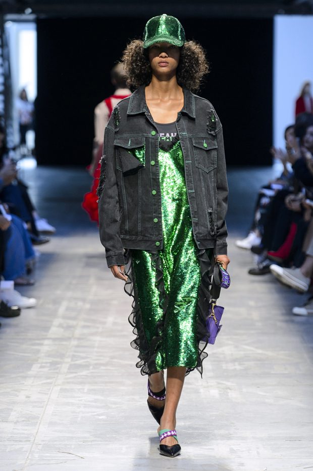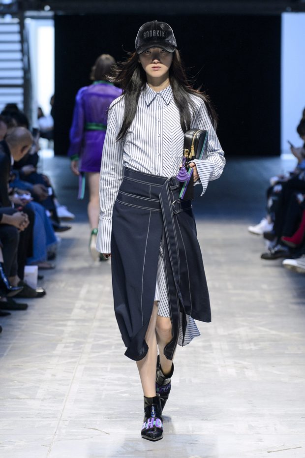 Annakiki presents the spring summer 2018 collection at Milan Fashion Week. The theme behind the collection is ‘Phoneaholism’- A cell phone notification, followed by another, and then another. A rhythmic and persistent beat; the new frequency of our entire life system. Transforming a tool that is merely useful into something that is indispensable. The collection has an ‘80s vibe, elevated with bold colors, asymmetry, and transparency. An accessories line that includes shoes, bags, and caps completes the collection.