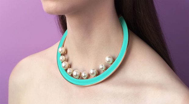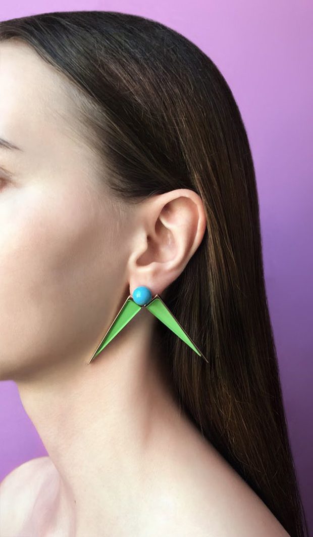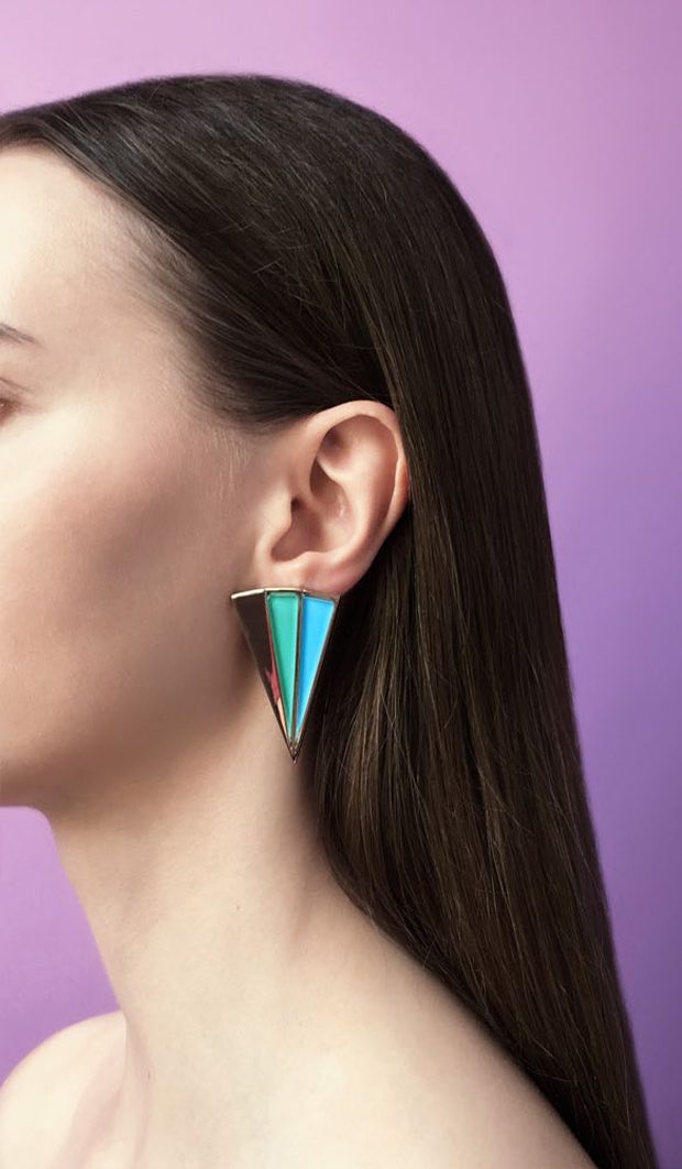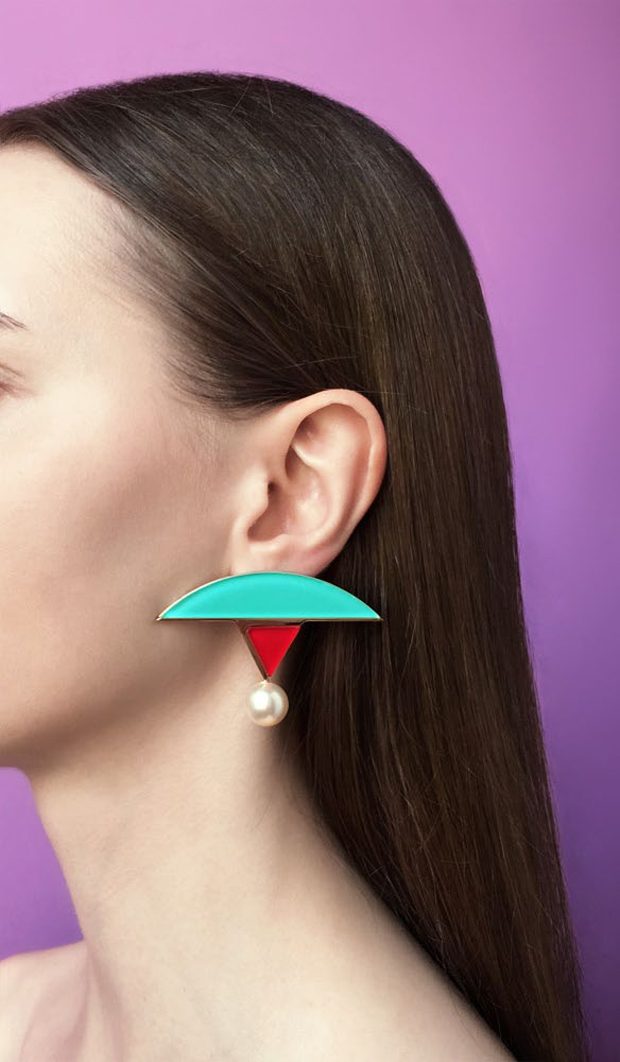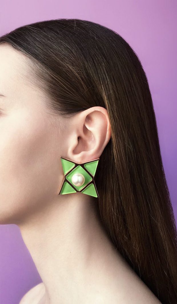 Discover Sylvio Giardina‘s Spring Summer 2018 jewelry Collection. The collection UFO, or Unidentified Flying Object, has a galactic vibe. The jewelry is composed of pearls, brass and plexiglass with galvanic gilding 18K. The Lead free, nickel free collection is made in Italy.