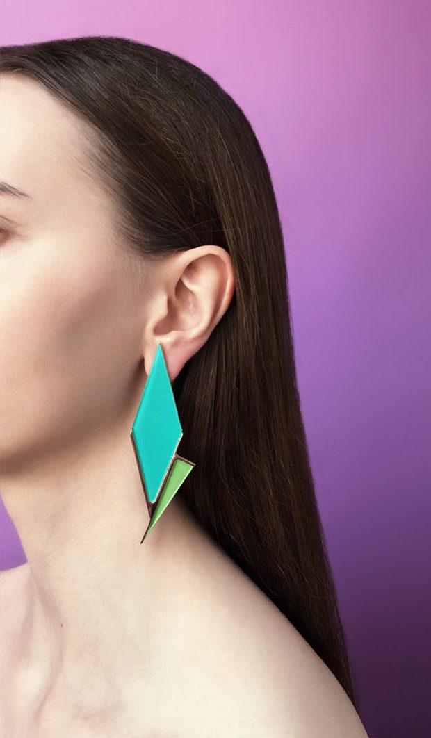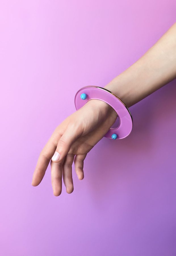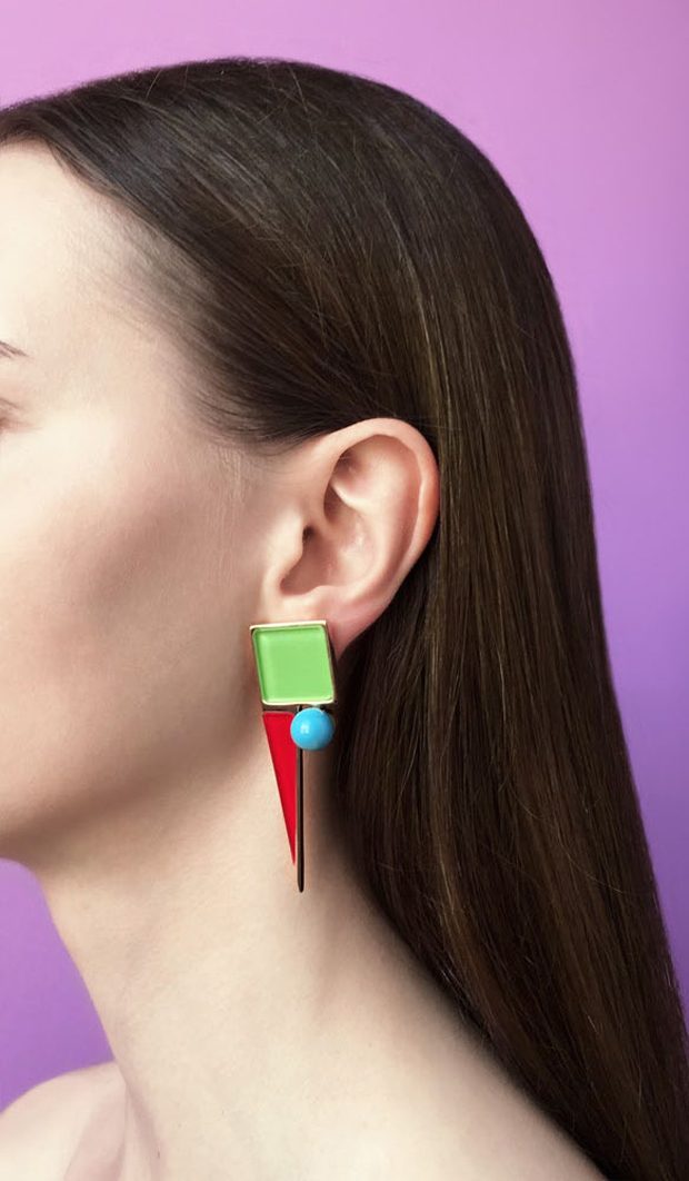 Sylvio Giardina is known for his bold accessories with playful references and for his trailblazing use of plexiglass and brass with galvanic gilding 18K. He has elevated the art form to the level of fine jewelry by focusing on technique and craftsmanship. Each season Sylvio tells a story with his handmade accessories, inventing a bright world where fashion can be both fun and darin