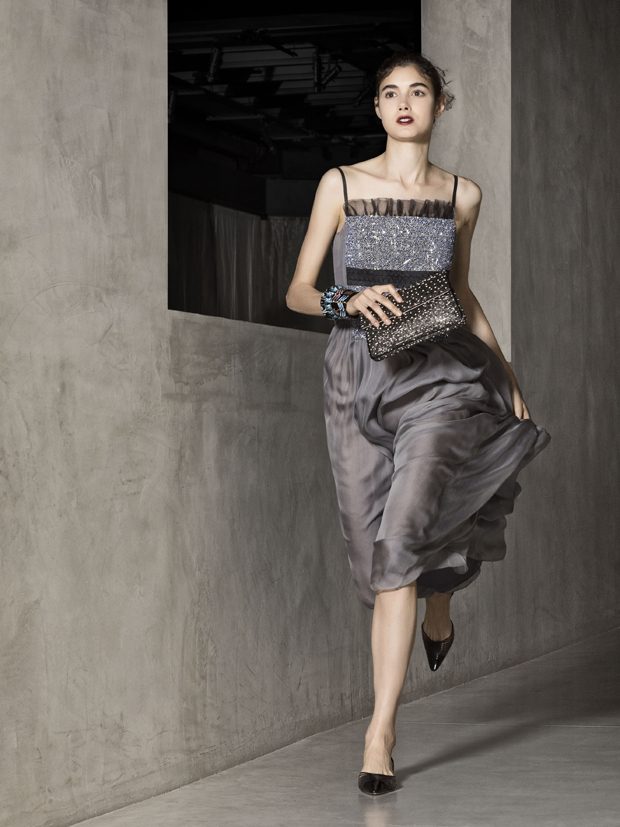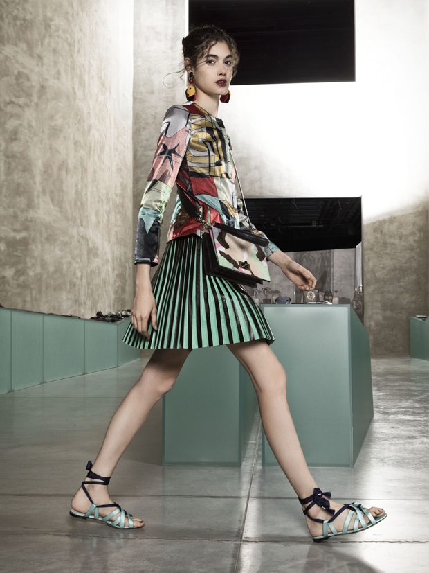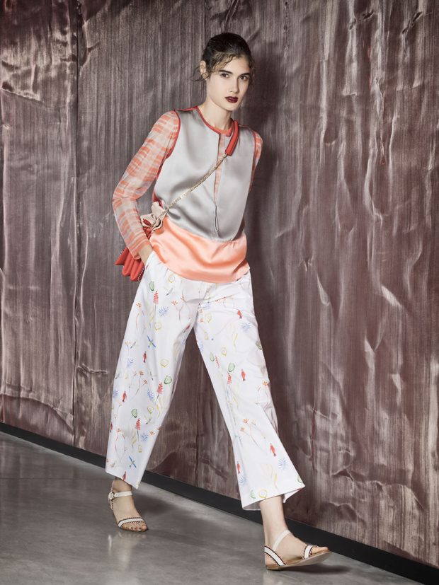 Giorgio Armani presents the women’s cruise collection spring summer 2018. The collection has an eclectic spirit that enhances femininity. Artistic instinct and inspiration combine with Armani’s design language, defining new proportions yet keeping intact its innate elegance and refined natural quality. Bold shades of pink and red, light blue and green reflect a painter’s palette, while the prints reference soft brush strokes. The silhouettes follow body movement with balanced asymmetry.