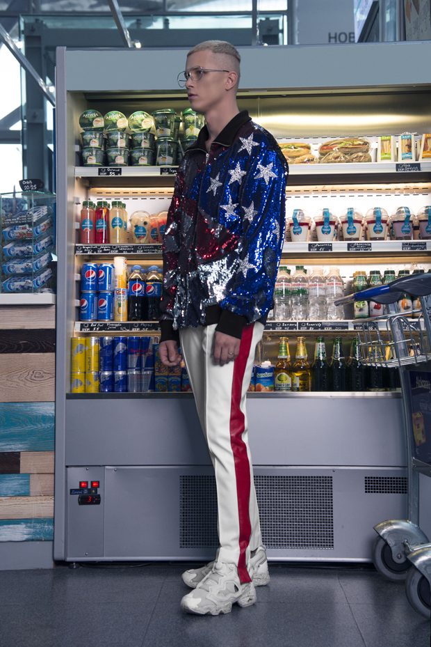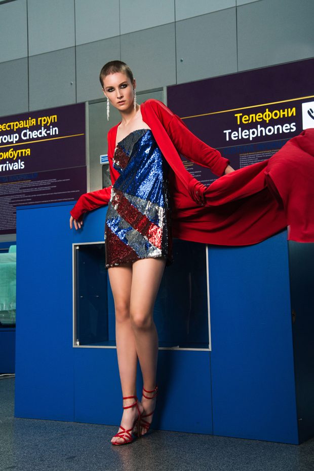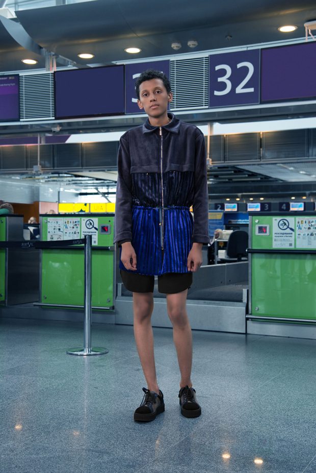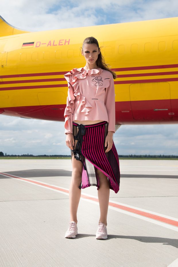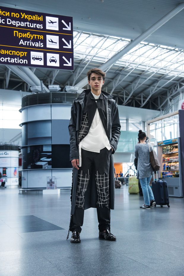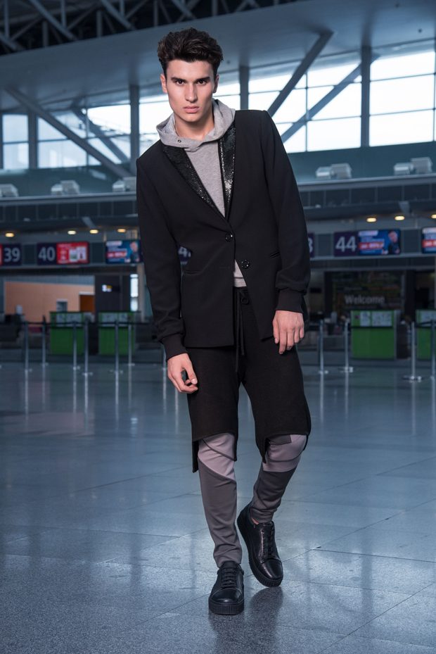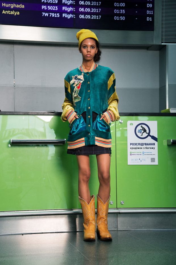 Jean Gritsfeldt presents ‘Eupraine’ the spring summer 2018 collection. The looks are photographed at Bryspil International Airport in Kiev.Street couture is presented in the form of a denim embroidered with Swarovski stones, volumetric jackets and hoodles made from sequin fabrics. At the same time, you will see an absolutely experimental design of the basic things of the average traveler, but in a different destination, where life jackets will become a bright accessory, and the runway pattern will lie on the side of the lapel of the jacket.