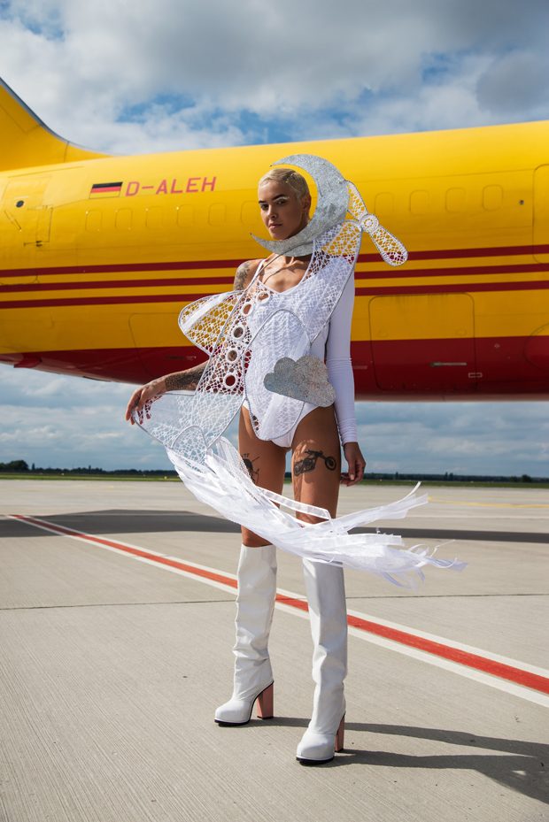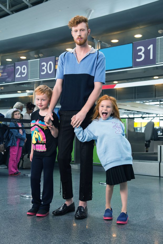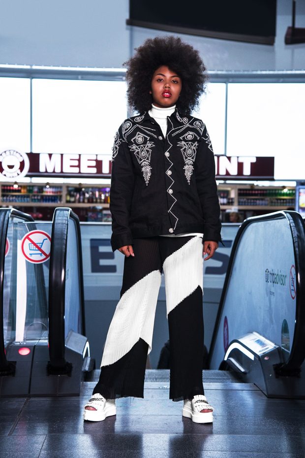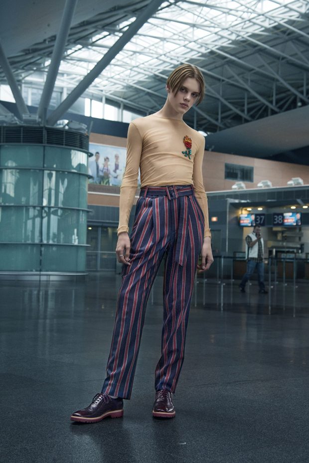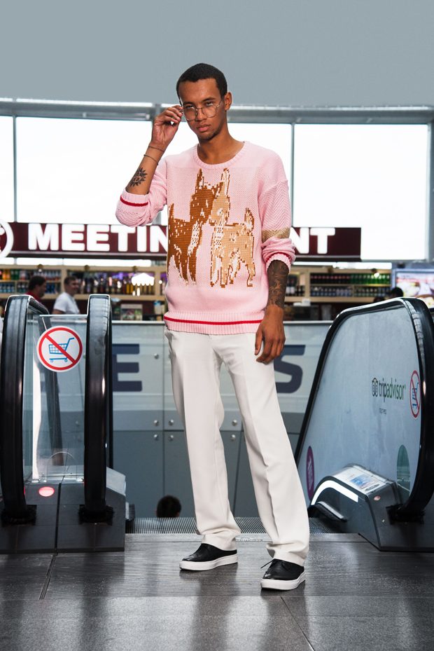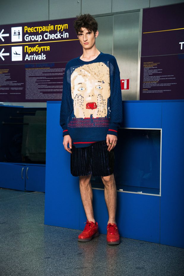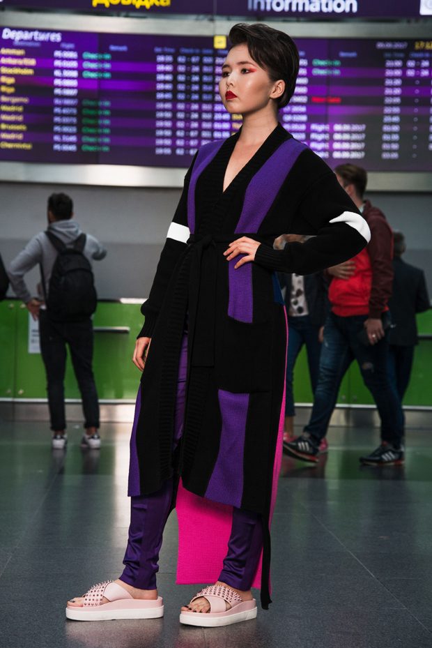 Jean Gritsfeldt presents ‘Eupraine’ the spring summer 2018 collection. The looks are photographed at Bryspil International Airport in Kiev.Street couture is presented in the form of a denim embroidered with Swarovski stones, volumetric jackets and hoodles made from sequin fabrics. At the same time, you will see an absolutely experimental design of the basic things of the average traveler, but in a different destination, where life jackets will become a bright accessory, and the runway pattern will lie on the side of the lapel of the jacket.