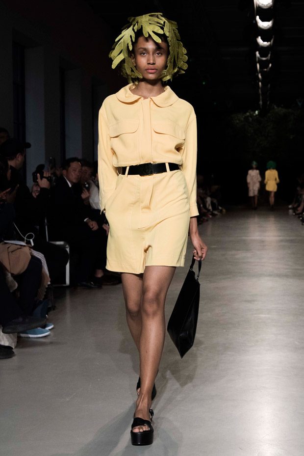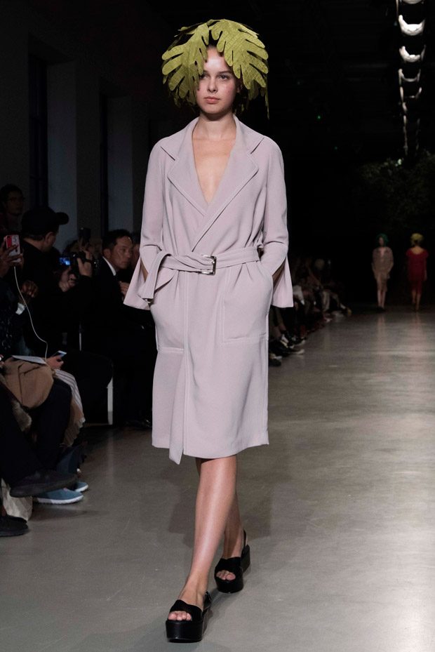 Under dreamlike headdresses of giant leaves, the classics twist away, the basics jazz on, dresses dance with glee and blouses giggle in limpid and casual laughter.