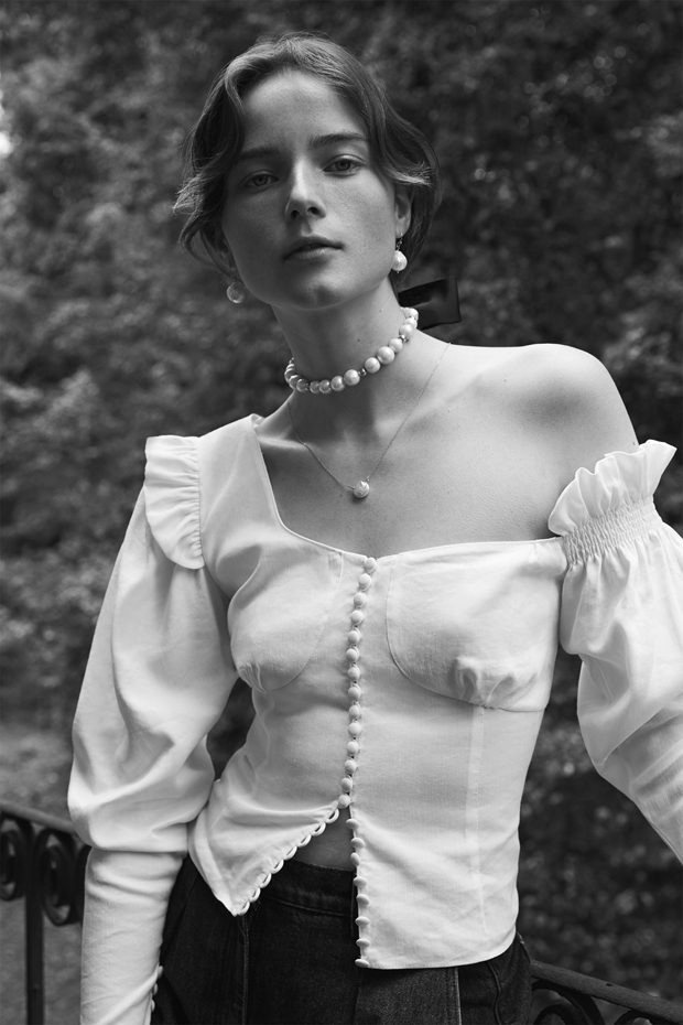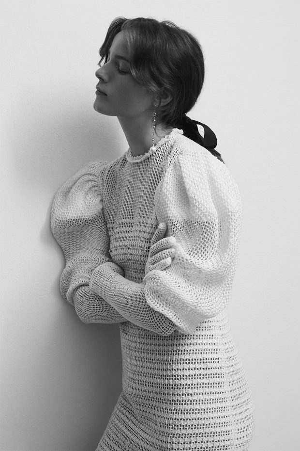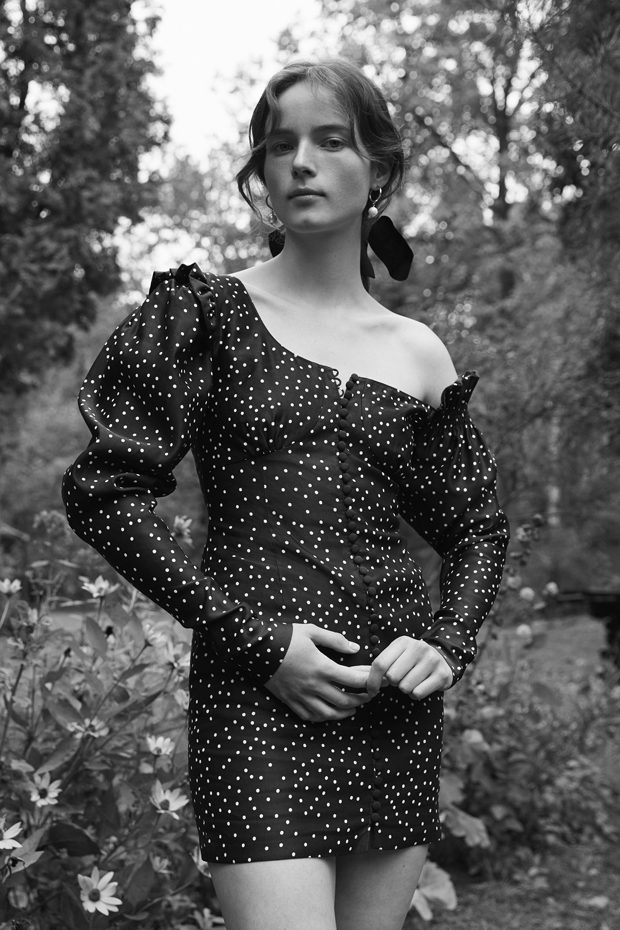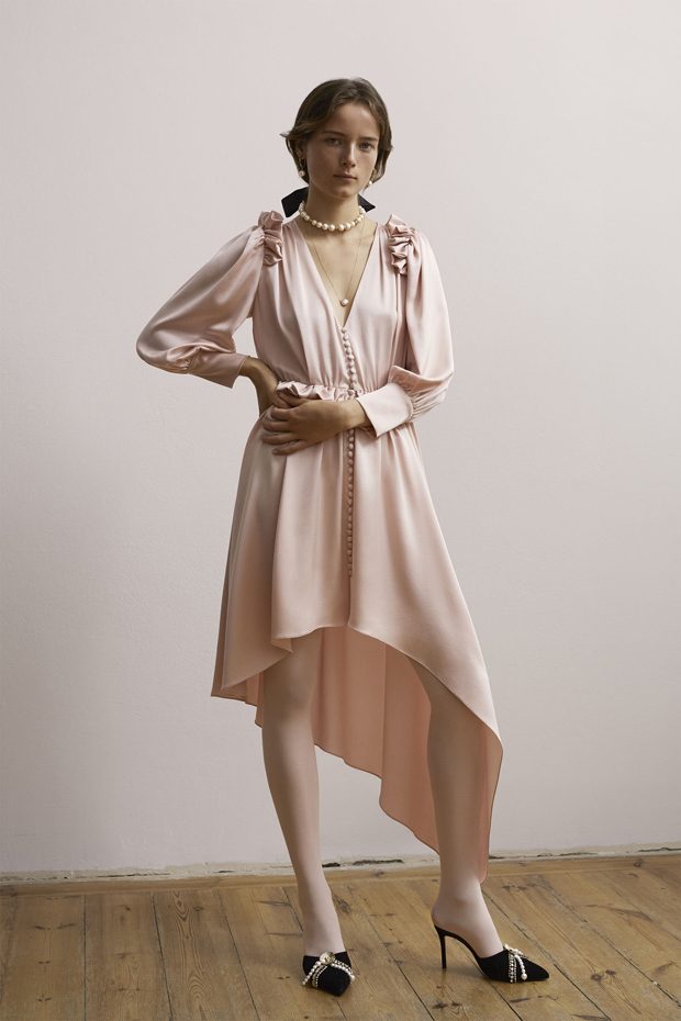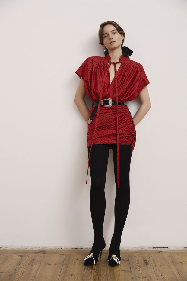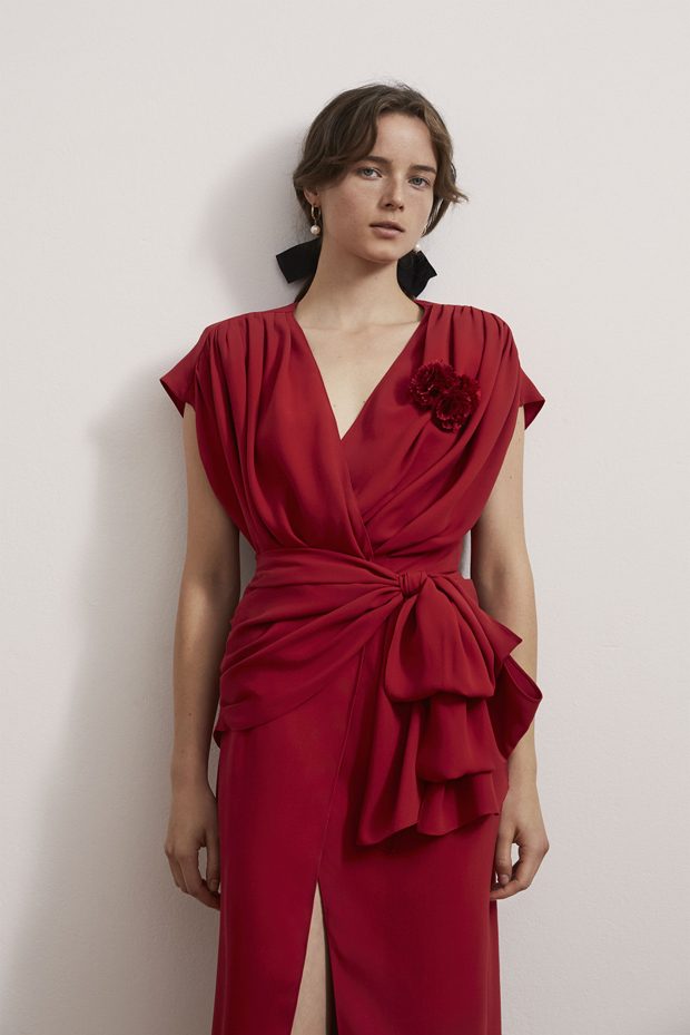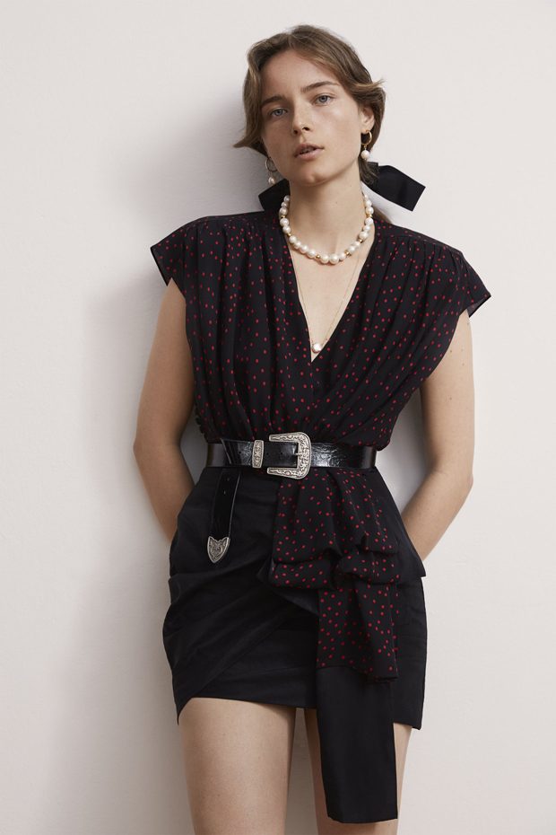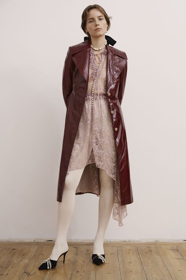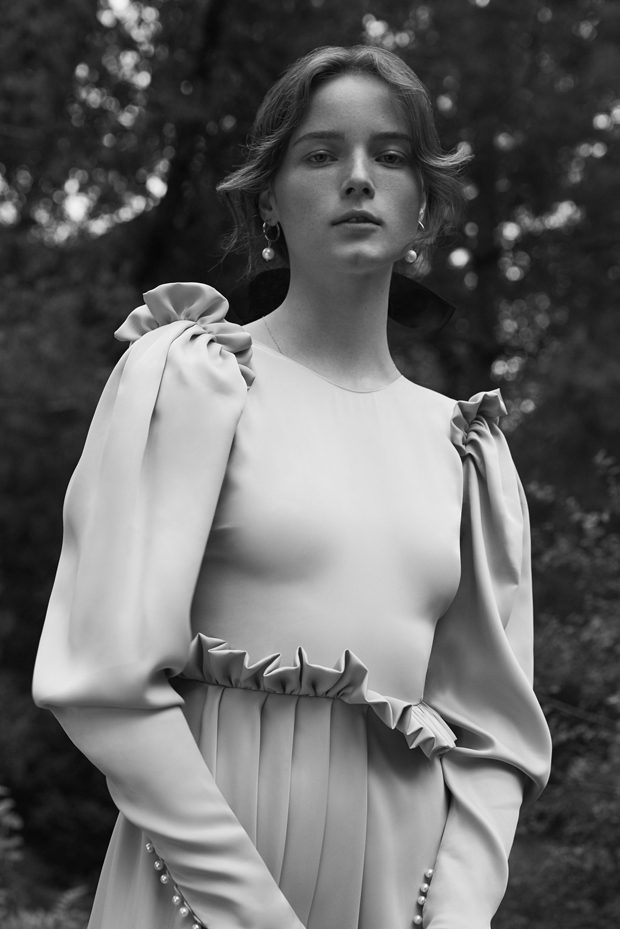 “The collection sees Magda perfectly encapsulate the feel and mood of the classic era with the nonchalance of the 80s. Everyday designs in exaggerated proportions are elevated with timeless tailoring and clean cuts; the classic trench coat is deconstructed, silk blazers and large sleeved leather jackets are cropped and oversized, with dropped shoulders for added air of insouciance. Statement sleeves in silk, effortlessly play against the eighties Working Girl aesthetic of wide drop shoulders and high waist raw denim.”