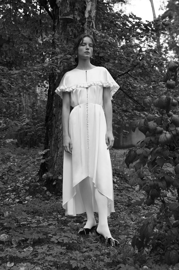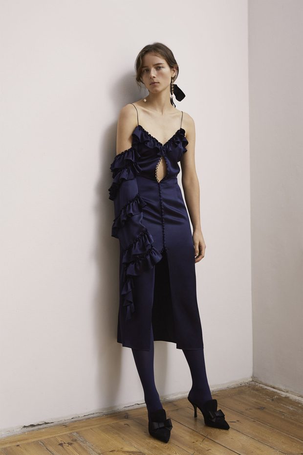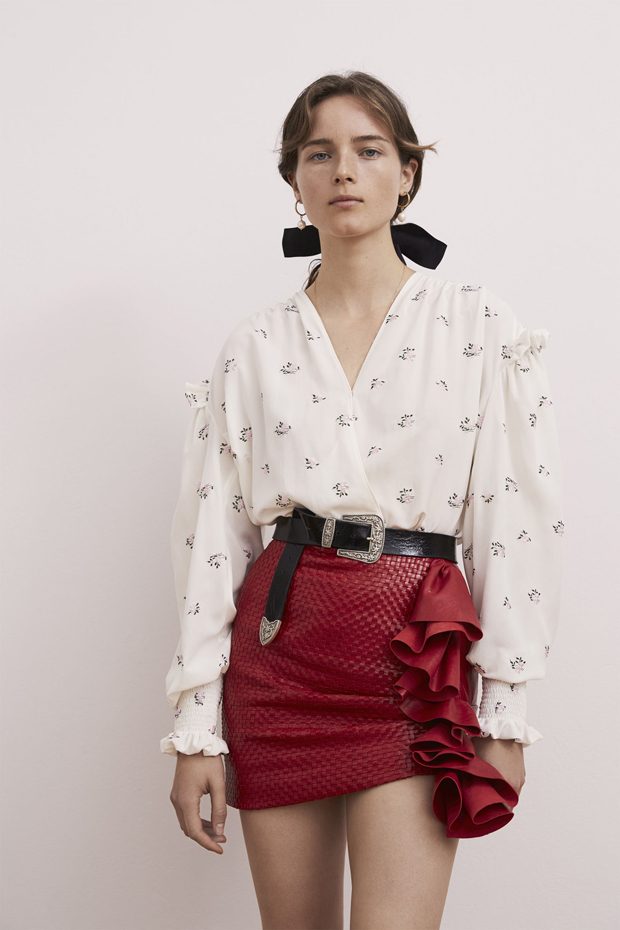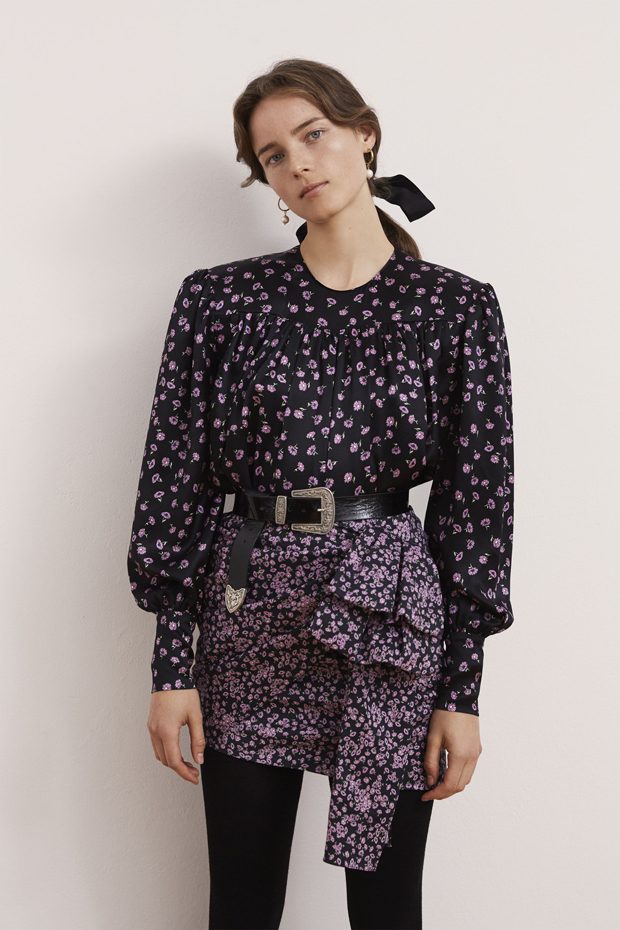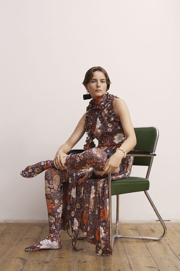 Magda Butrym presents the spring summer 2018 collection. Nostalgic for bygone eras, Magda draws inspiration from the empowering stature of 18th century fashion, transforming traditional to modern. 70s inspired prints, voluminous silhouettes and bold shoulders are central this season.