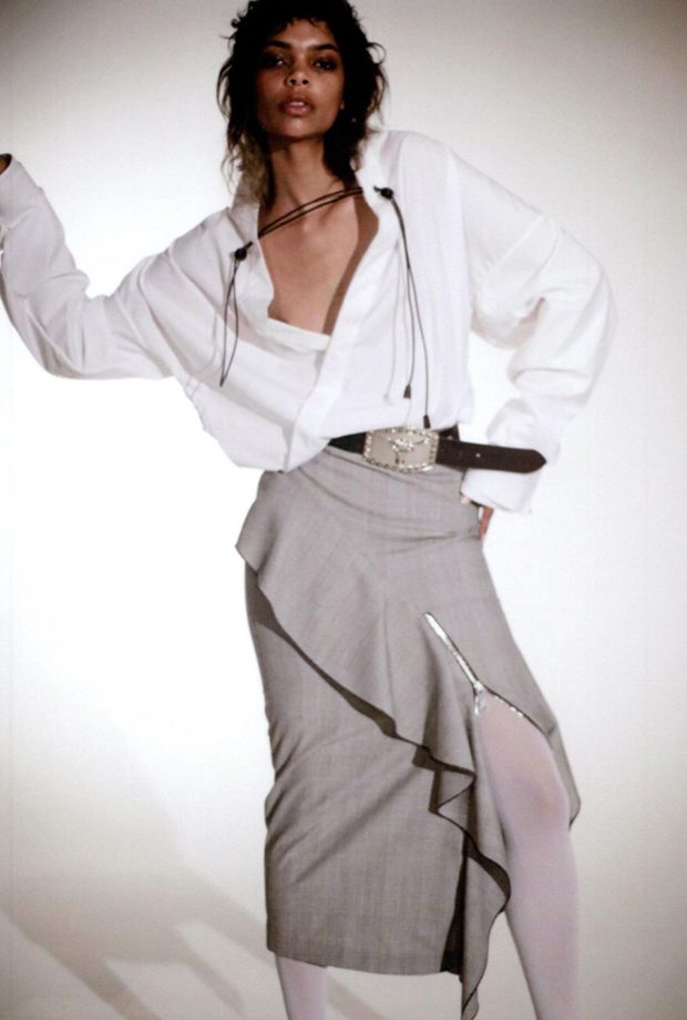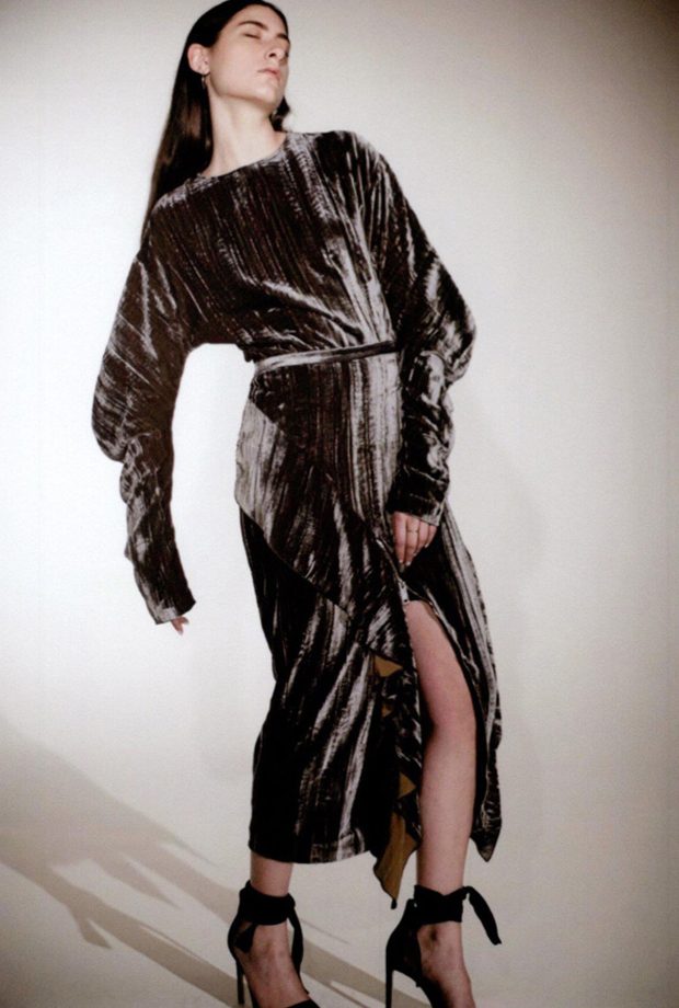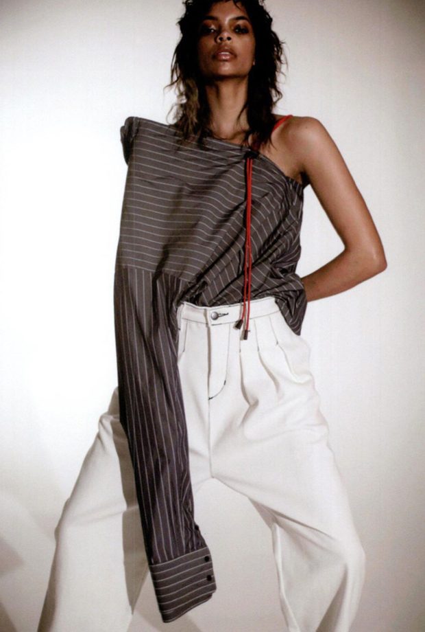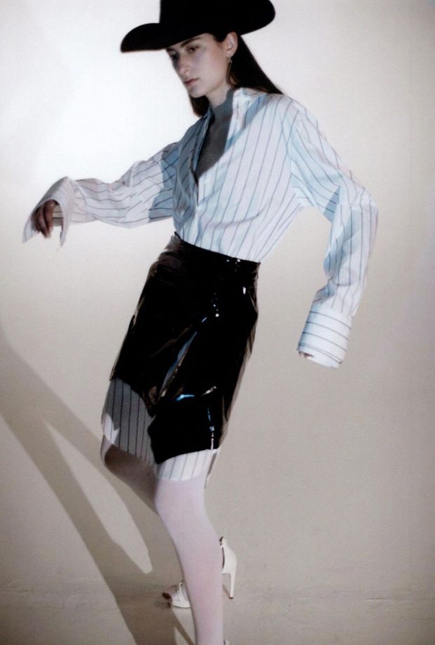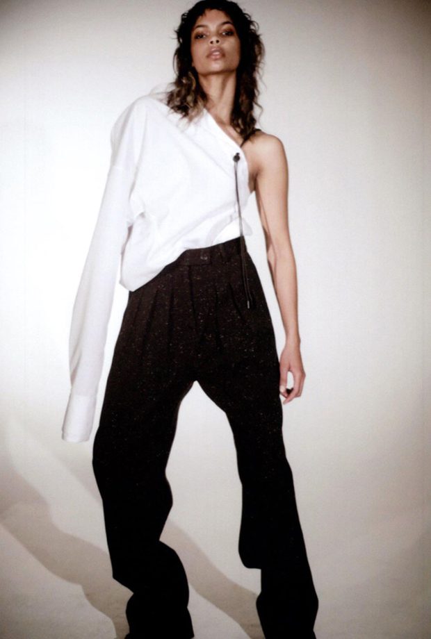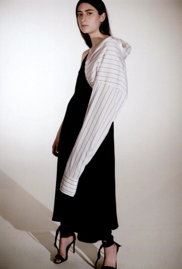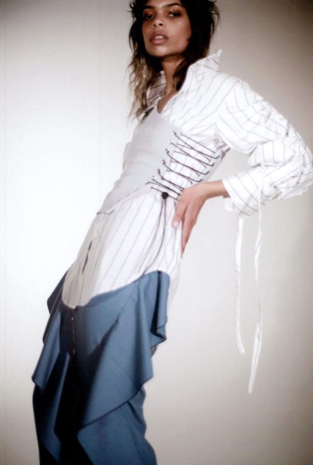Strateas Carlucci presents the spring summer 2018 collection. Inspired by the Paris Metro and the work of Chinese photographer Ren Hang, the collection is titled ‘Transit’. There is birth, there is death; life is TRANSIT. Strateas Carlucci explores and compares the rawness, the grit and the beauty of the real world and the underground of the Paris Metro to Hangs raw and provocative imagery of nudes, which are both confronting and beautiful, yet speak of purity. The metro is a living organism made up of varied individuals, like the bodies presented in Hang’s work; intertwined, tangled, bent, stacked and twisted. The collection itself consists of the intertwining and meshing of opposing notions. Melding shirts with dresses, tailoring with denim, candy colours with subversive details and playing with masculine and feminine forms and fabrications creates strong silhouettes and sharp tailoring with oversized shapes.