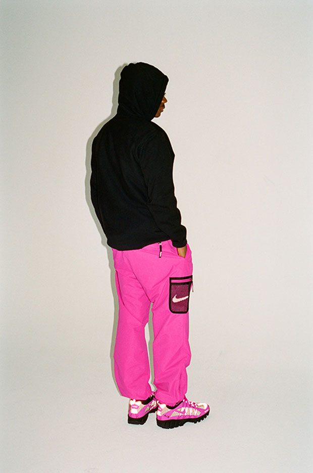 Supreme x Nike Air Humara collaborate this fall to create a collection featuring a trail running jacket, pant, and hat in four colorways with a nylon and water resistant coating, reflective printed graphics and mesh pockets. The Air Humaras feature a reflective perforated body with mesh overlay, reflective printed graphics on toes, heels and webbing lace supports. The sneaker also features a low-profile phylon midsole with Air-Sole® heel unit and Zoom Air™ forefront unit.