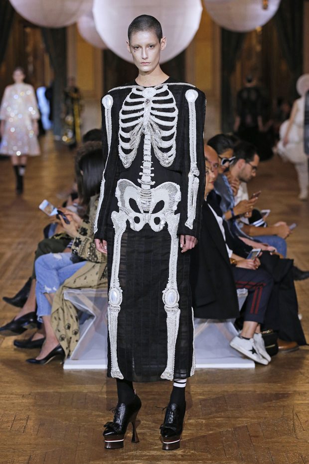 An American in Paris dreams of couture, the most Parisian of all arts. Shapes shift, bustiers keep, garters hold, trousers dangle, volumes inflate. In tulle. Broad shouldered jackets and ladylike suits find another meaning. Out of tulle. A feat of embroidered rackets and anchors, of pin-tucks and trompe l’oeils. On tulle.