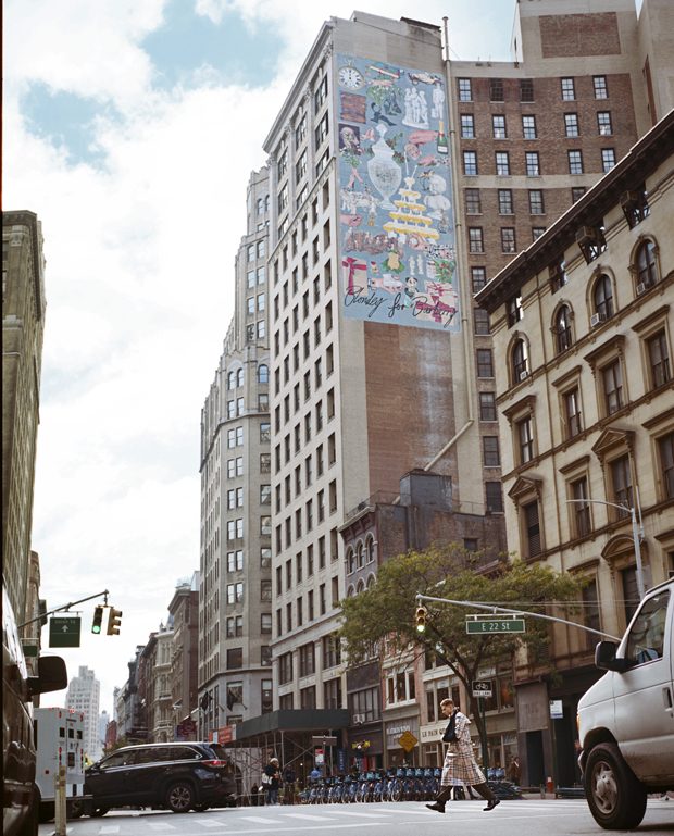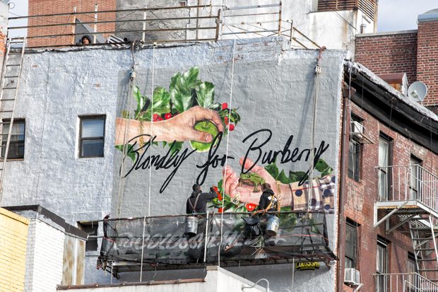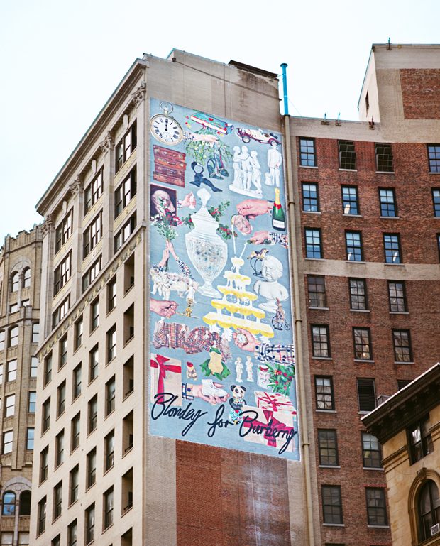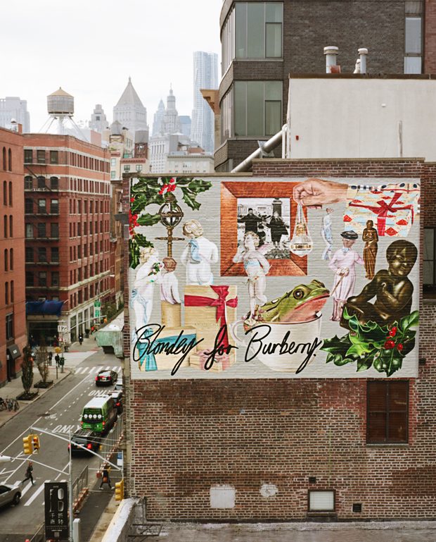 British artist, designer and pro-skater Blondey McCoy has created three hand-painted murals in Manhattan exclusively for Burberry. Inspired by the dichotomy of modern life and the traditions of the holiday season, with strong references to Burberry and British culture, the new murals are Blondey’s largest artwork to date.