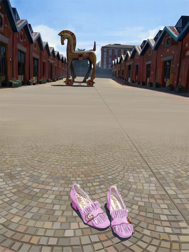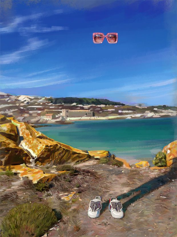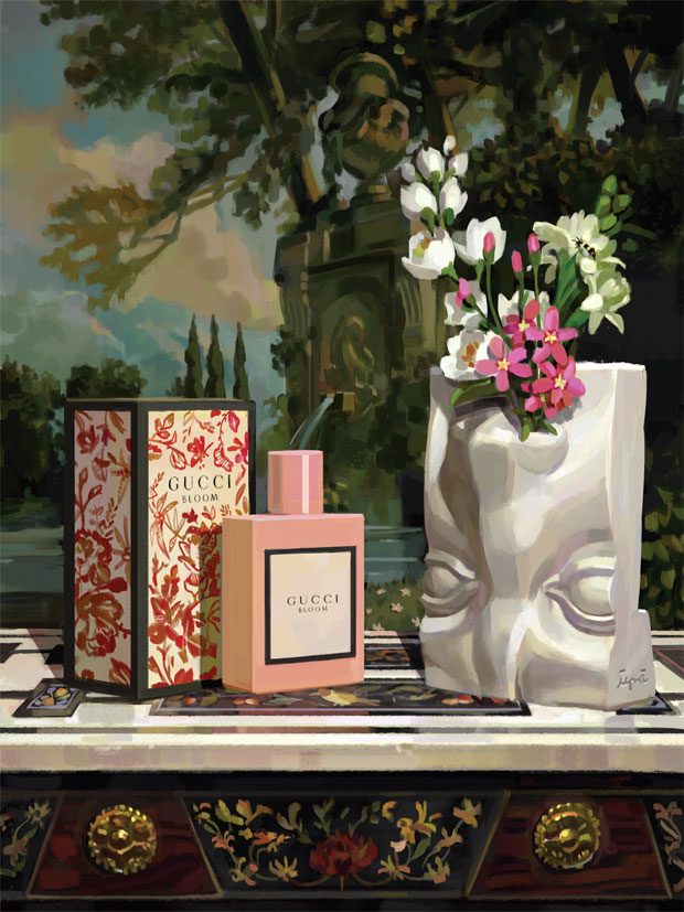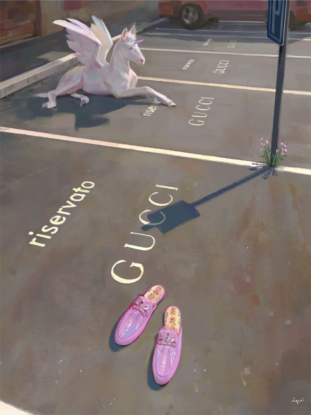 This is not the first time Monreal and Gucci have joined forces, their first collaboration saw light in 2015 on the much talked about #guccigram hashtag takeover. Furthermore, Monreal’s work also appears on tshirts print in the Cruise 2018 collection. Alessandro Michele and Gucci have brought a special tshirt collection featured the artists artwork as part of the upcoming Cruise 2018 collection. Little over a month Ignasi Monreal also collaborated with the Florentine fashion house to deliver Gucci Artwalls in NYC and Milano promoting the launch of Gucci Bloom fragrance. Such project is in the works as well for the Gucci Gift Giving campaign where artist will once again illustrate prominent locations in chosen fashion hotspots. The art walls are currently scheduled for New York and Milan again, and are to focus on Gucci Eyewear.