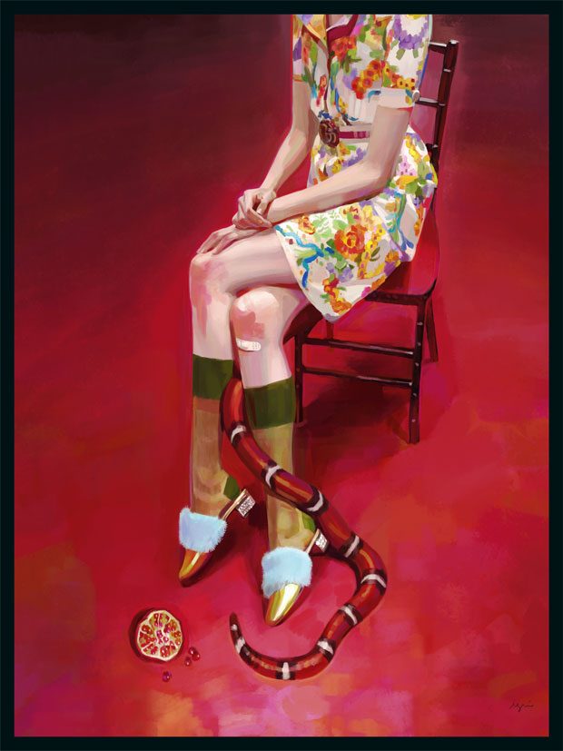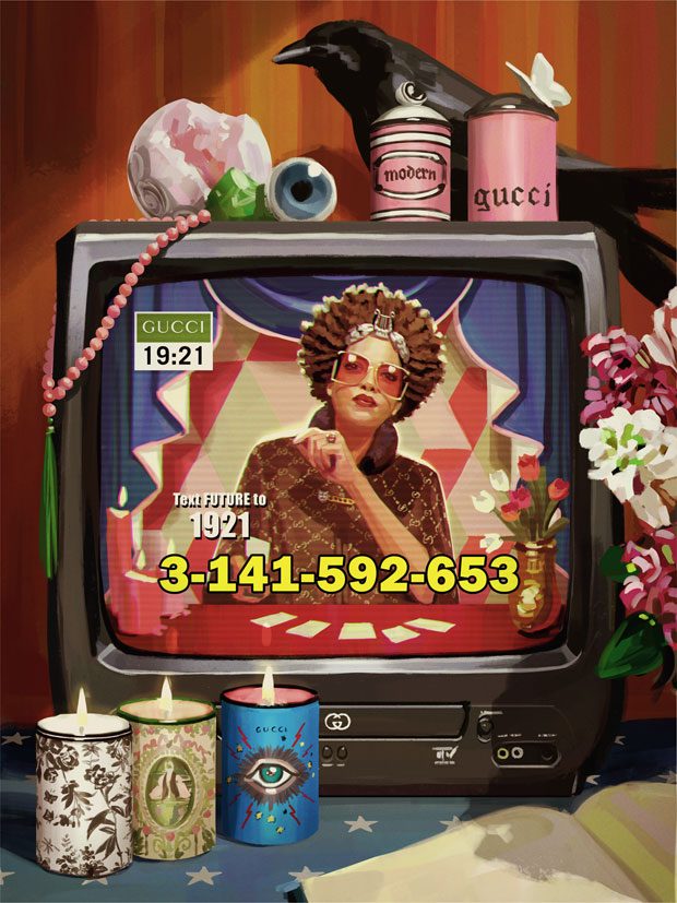 With the holidays quickly approaching GUCCI has launched its GIFT GIVING campaign celebrating some of the label’s most coveted items released in the past year. For the campaign GUCCI has teamed up with Spanish artist IGNASI MONREAL to deliver a collection of artwork celebrated in a specially released book. Monreal’s artwork is touching on the sentiment of the fall of of Icarus throughout the eye-catching imagery, while at the same time it features products Gucci brought for its Gift Giving selections. This mix of contemporary art and renaissance masterfully touches on today’s pop culture and the obsession or simply said mania creative director Alessandro Michele and his team were able to bring to reality.