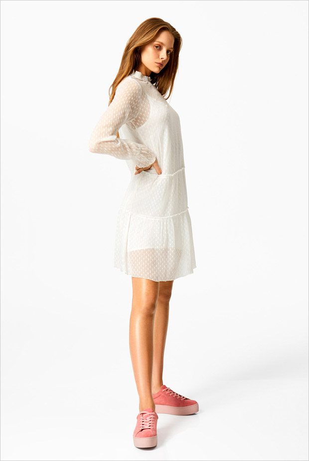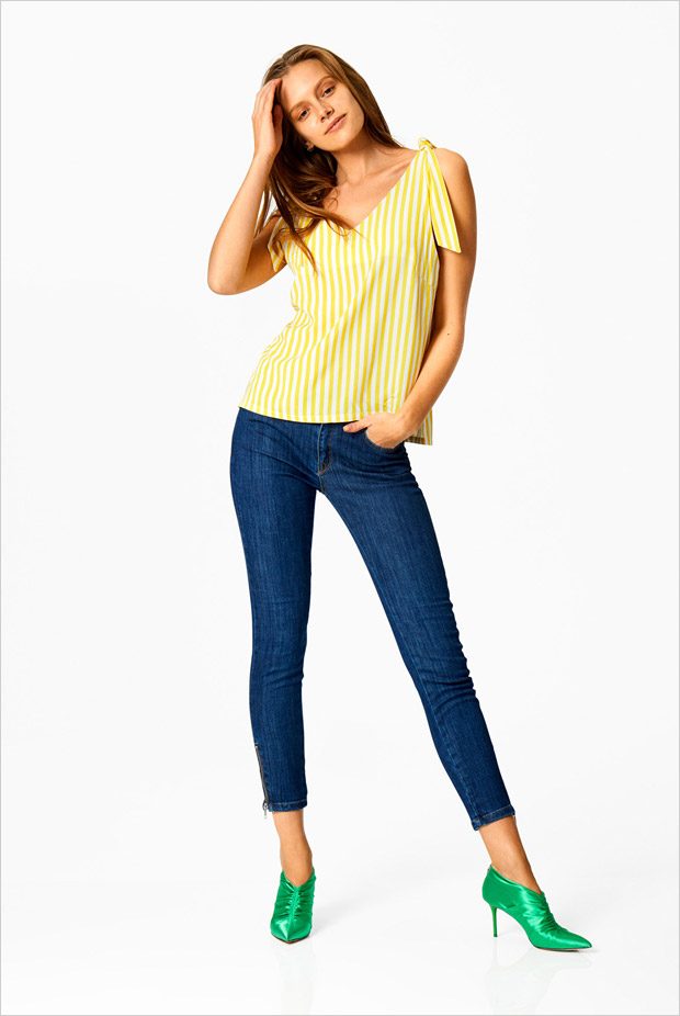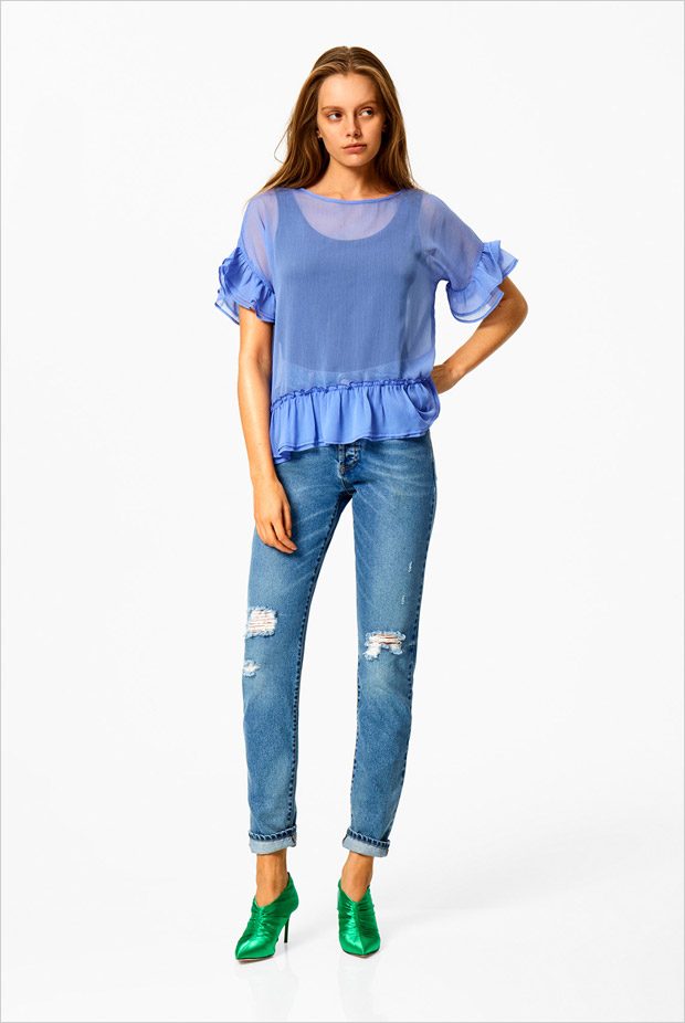 For their affordable Spring and Summer 2018 collection, mbyM SS18 prefers wrap- around outfits. Due to their light fabrics, they are the perfect addition for your travel wardrobe. Moreover the tops, dresses and robes of this collection are mainly focused on the waist, especially when being paired with easy- going ruffles and striking colour combinations that stay in mind, those looks are a true eye- catcher without ever being too loud. See- through fabrics play a central role in this collection. Due to their graceful approach, they always stay utterly wearable.