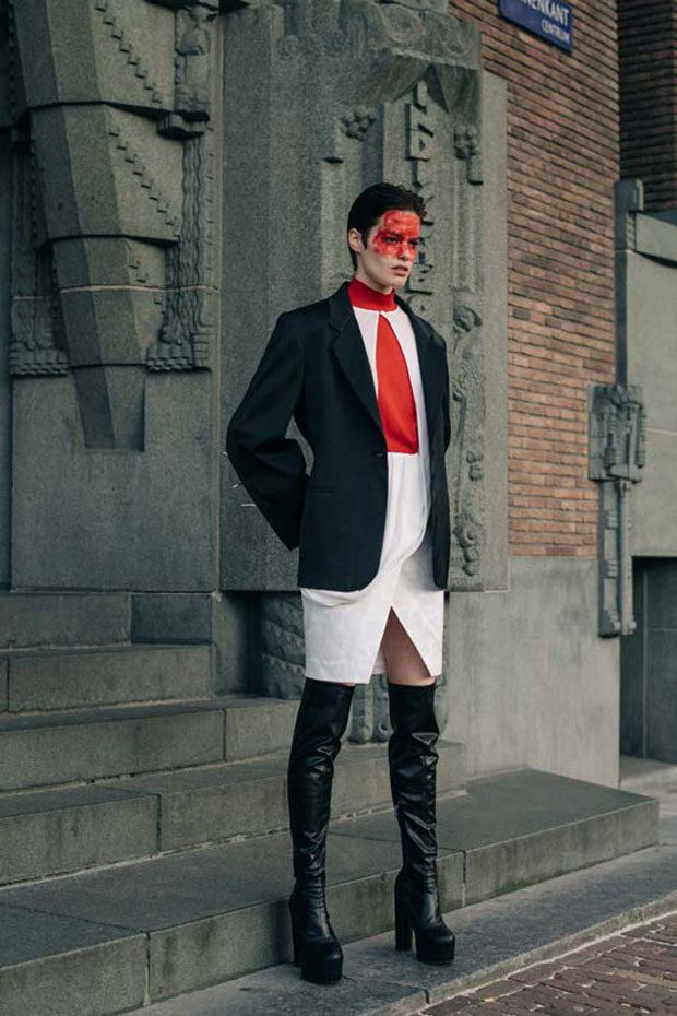 ROUGE MARGAUX  universe reinterprets traditional savoir-faire to create an ultra-contemporary wardrobe. A mix of materials create harmonious lines between traditional and technical textiles, merging colours and patterns without limitations. Cuts and constructions evolve around function rather than ornamentation. Embellishments and accessories are used to accentuate the visual effects of the pieces. – from Rouge Margaux