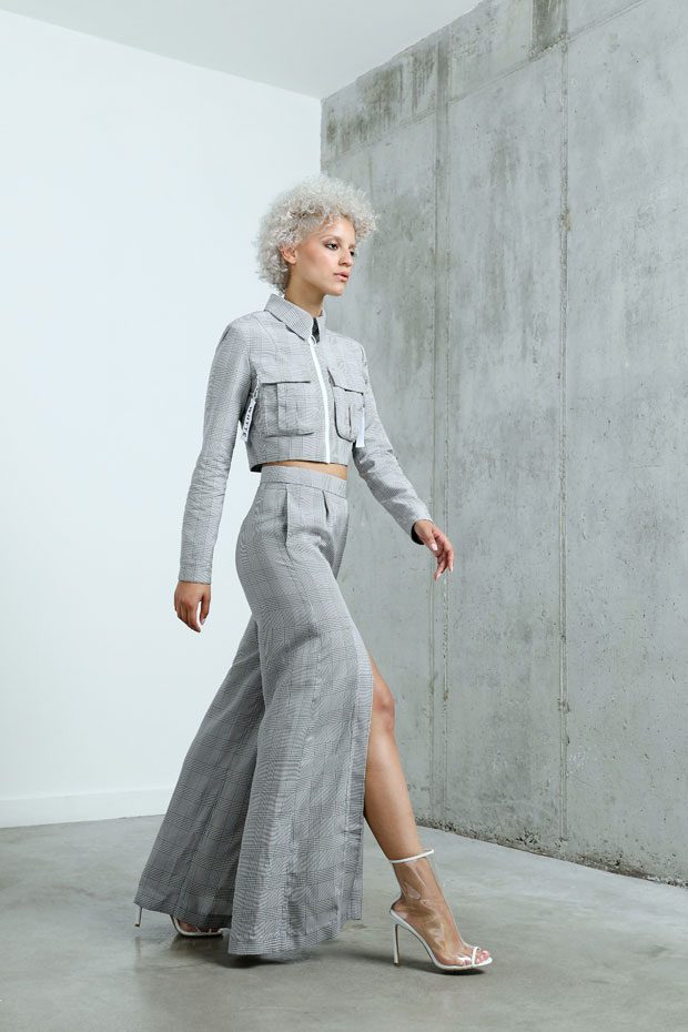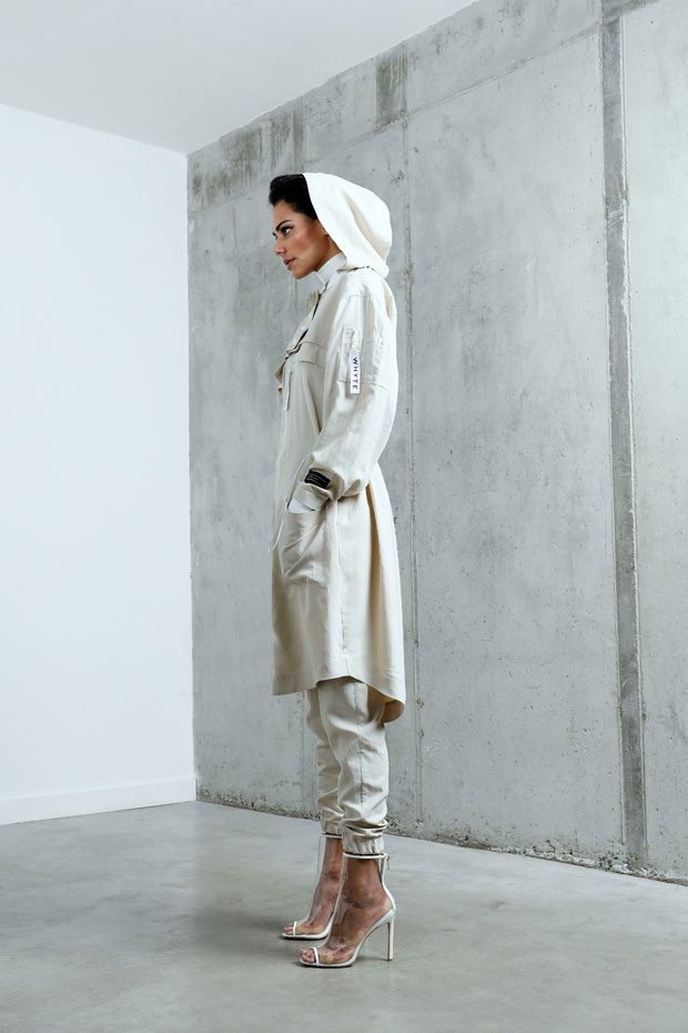 The spring summer 2018 “whyte mode” focuses on practical and functional design inspiration that crosses over from the spring transitional drop, mid-spring festival summer drop to summer/high summer which targets both casual and resort wear. “Whyte mode” is about remembering the past in Order to imagine the future. Whyte studio will look back into archives of designer, Bianca Whyte’s early career and bring forgotten concepts forward, such as motocross inspired designs. – from White Studio