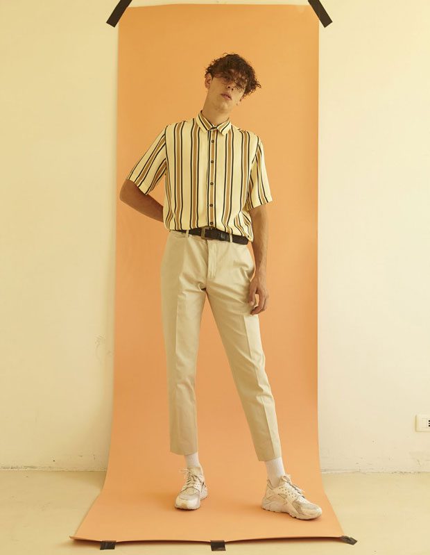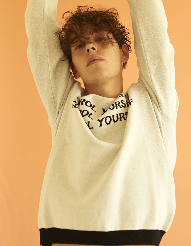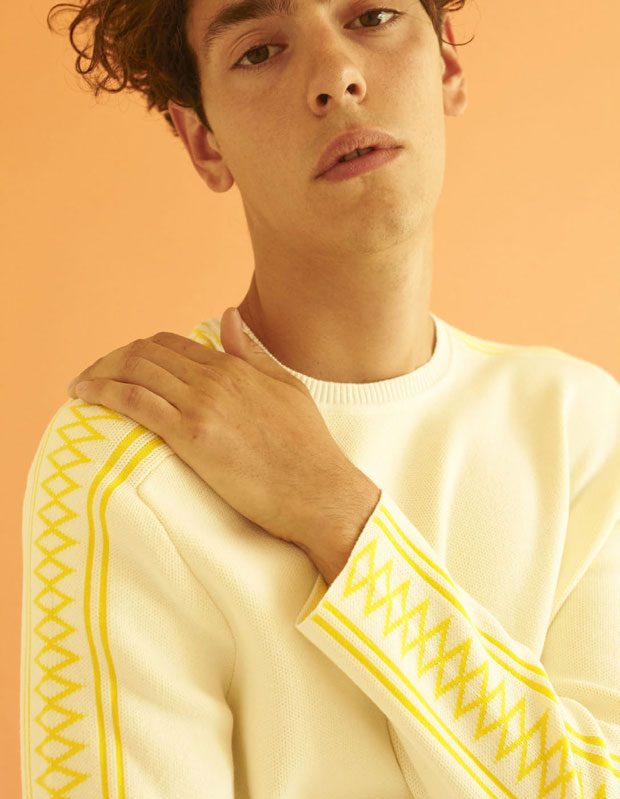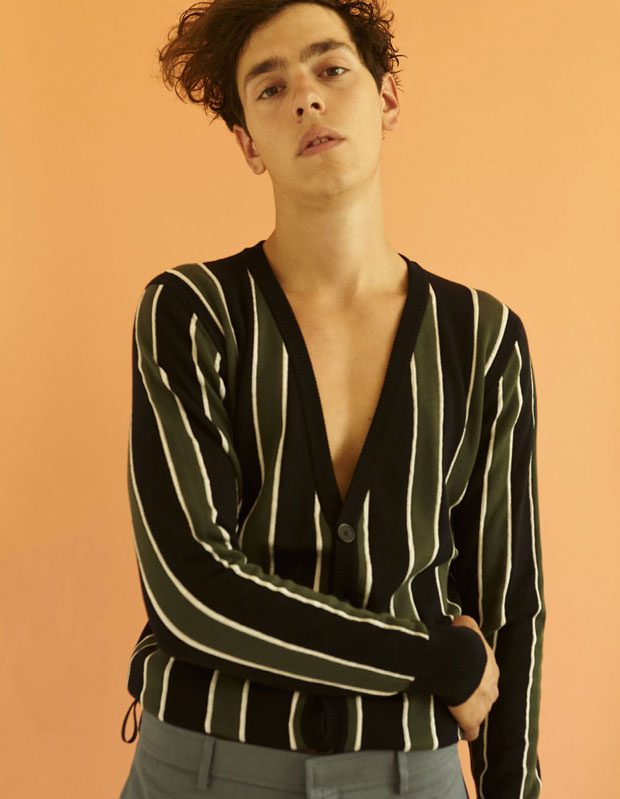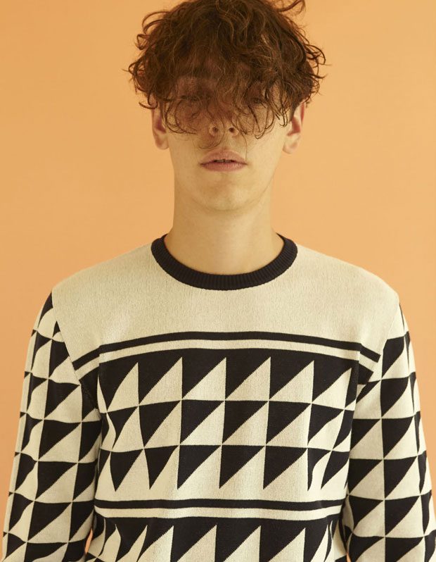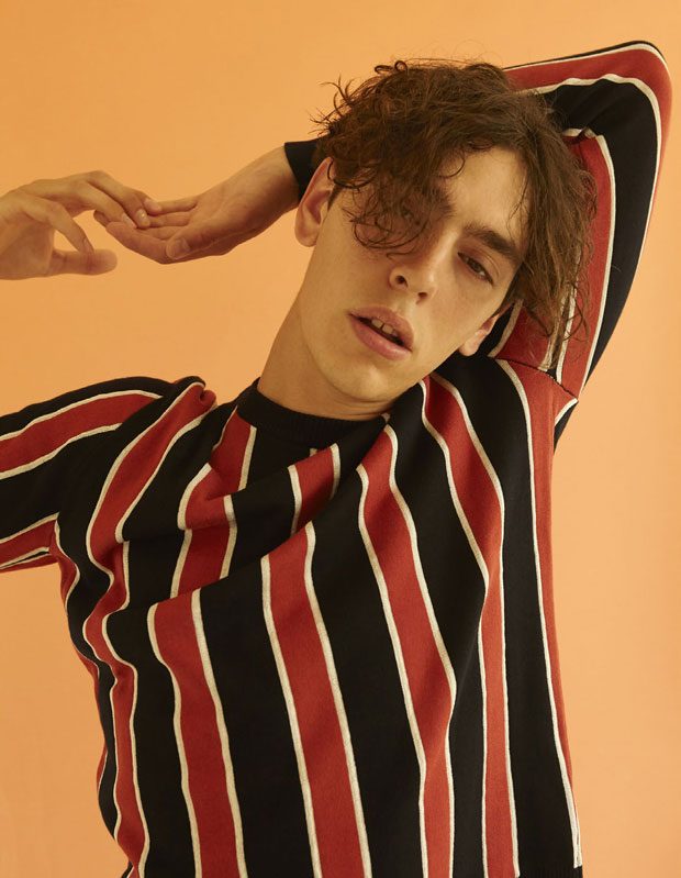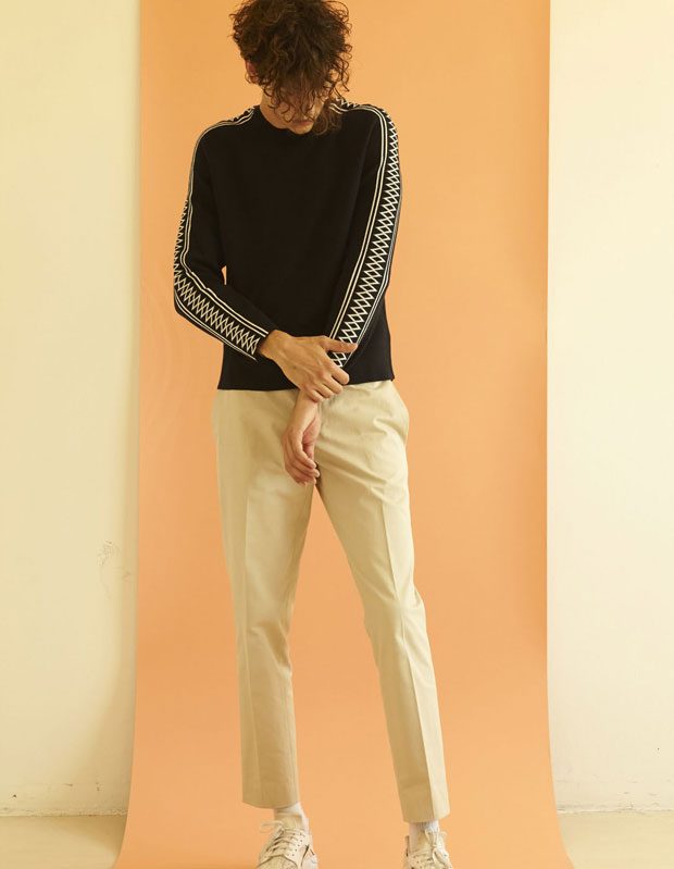 DROMe presented its new men’s Spring/Summer 2018 collection shot by 20 year old artist, Gabriele Rosati. This season, the DROMe men‘s collection includes a series of selected artisanal knitwear. Streamlined sweater silhouettes portraying graphic stripes, geometric prints and a tongue in cheek ‘control yourself slogan.