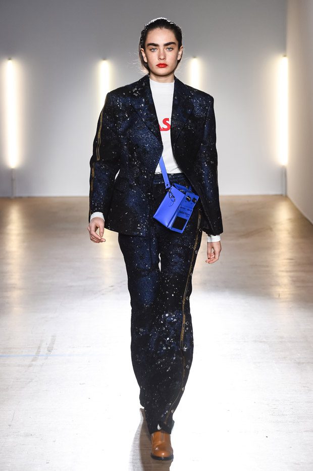 Unveiling at the show also are brand collaborations with Italian sportswear brand KAPPA and American workwear company DICKIES. The mirrored Kappa logo as seen on tracksuits and bomber jacket sleeves, is symbolic of the Yin and Yang philosophy. The iconic silhouette of Dickies’ twill pants is reworked into larger high-waisted versions, with some off-centred construction details, summing up the beautifully intriguing and dark elegance of the Christian Dada Autumn/Winter 2018 collection.“