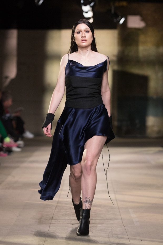 “ART SCHOOL is focused on redefining the limitations of gendered ready-to-wear fashion. Directed by the creative partnership of Eden Loweth and Tom Barratt, ART SCHOOL is a platform to express their collective ideas both in art and design using luxury fashion as a communicative tool to explore contemporary queerness. The label is informed by the founders and their friends’ non-binary gender identities and aims to celebrate the idiosyncratic individuality of queer style. AW18 is ART SCHOOL’s second season with MAN and their third with the support of Fashion East.“