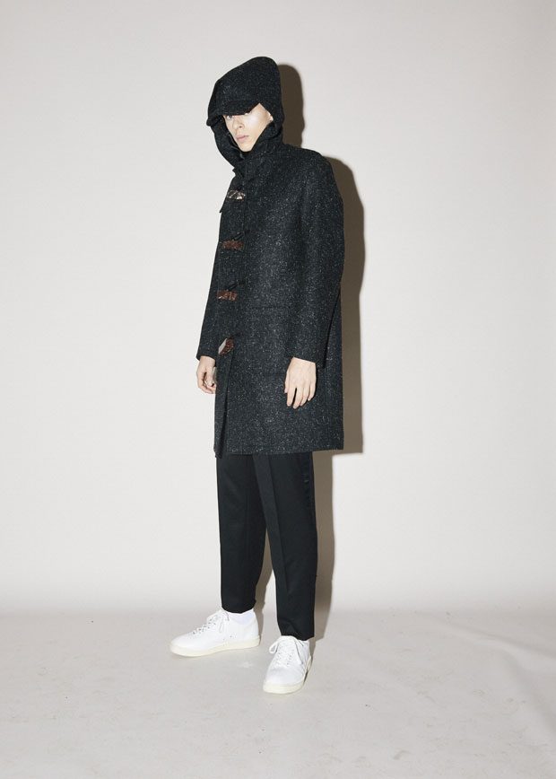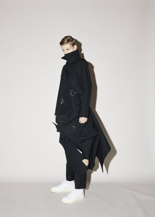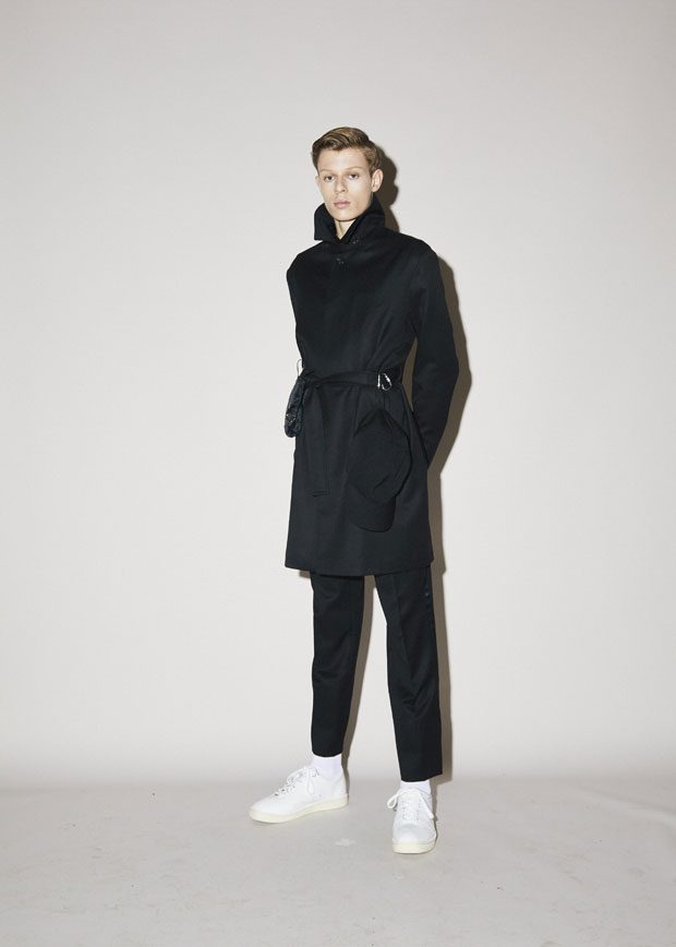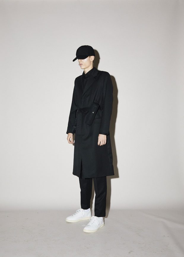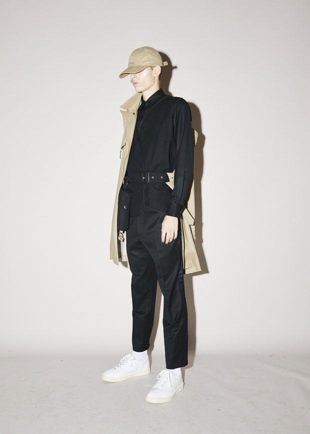 Sneakers were designed in collaboration with Amsterdam based Filling Pieces, working together to create a minimal, sleek slip on shoe with A Clean Form that can be effortlessly worn with both sharp tailoring and more relaxed silhouettes. Each have been hand-painted with a dripping ‘MM’ graphic. Trench coats and rain macs have been designed and made in collaboration with Hancock, handmade exclusively in rubber bonded, natural cloths and produced at the original Victorian mill in England. Two-layers of cloth are bonded with a layer of rubber in-between creating an impenetrable barrier ensuring the finished cloth is 100% waterproof. Scarves are printed in Japanese silk by Design Lab Japan, a continuing partnership. This season long-term Matthew Miller Collaborator Jonathan Baron photographed the human body as well as flowers and everyday objects that when paired together convey an underlying eroticism.. – from Matthew Miller
