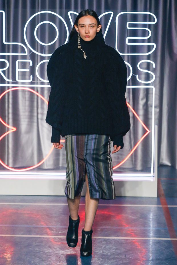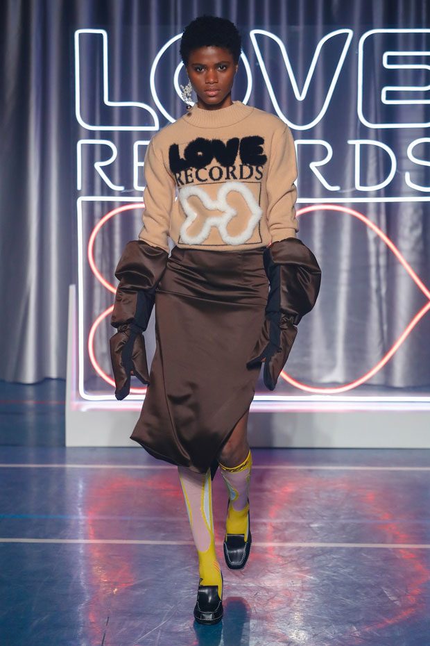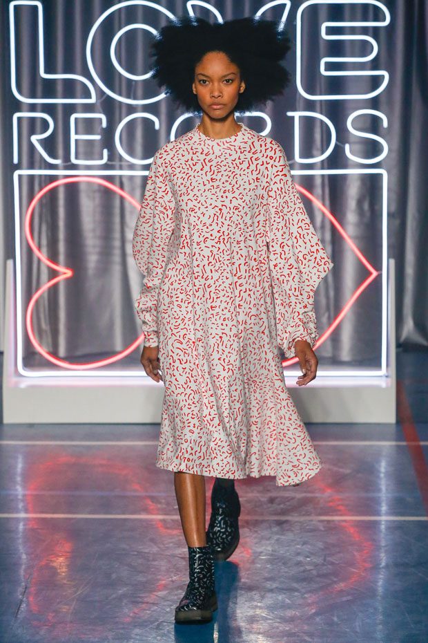AALTO presented the Love Records collection with an eye-catching Fall Winter 2018 flare. The collection is a mix of showstopping looks blending low and high, celebrating the contrasts present throughout the collection.