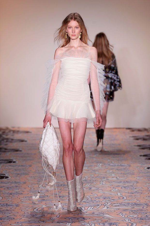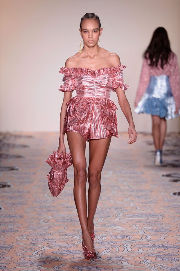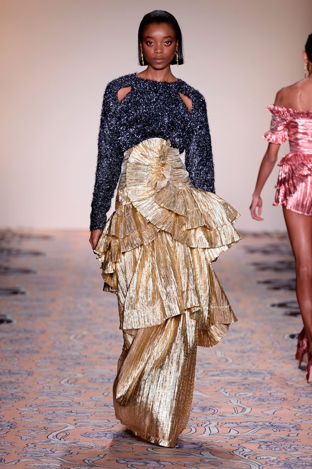 Inspired with the flare of the eighties alice McCALL has presented the Fall Winter 2018 collection, yesterday during New York Fashion Week. The collection displays a bold mix of patterns and retro inspired cuts.