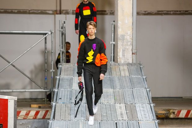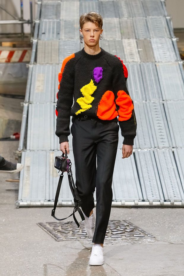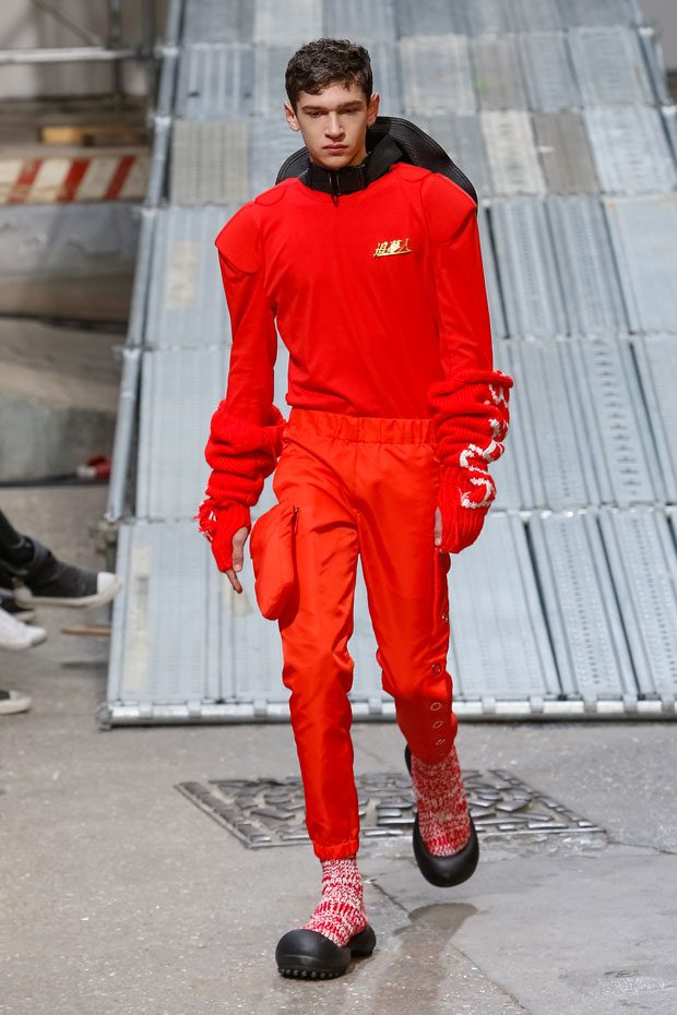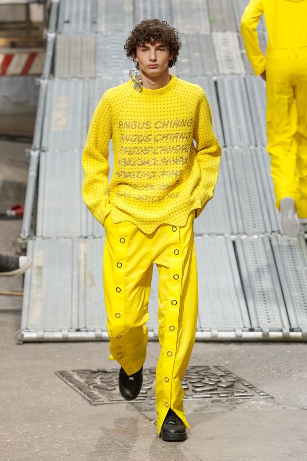 Discover Angus Chiang‘s Fall Winter 2018.19 collection presented during the recently finished Paris Fashion Week. Inspired by scooters and dream chasing, the collection features round and arc lines, geometric and angular splicing, pieced together like a collage in red, yellow, purple and black color palette.