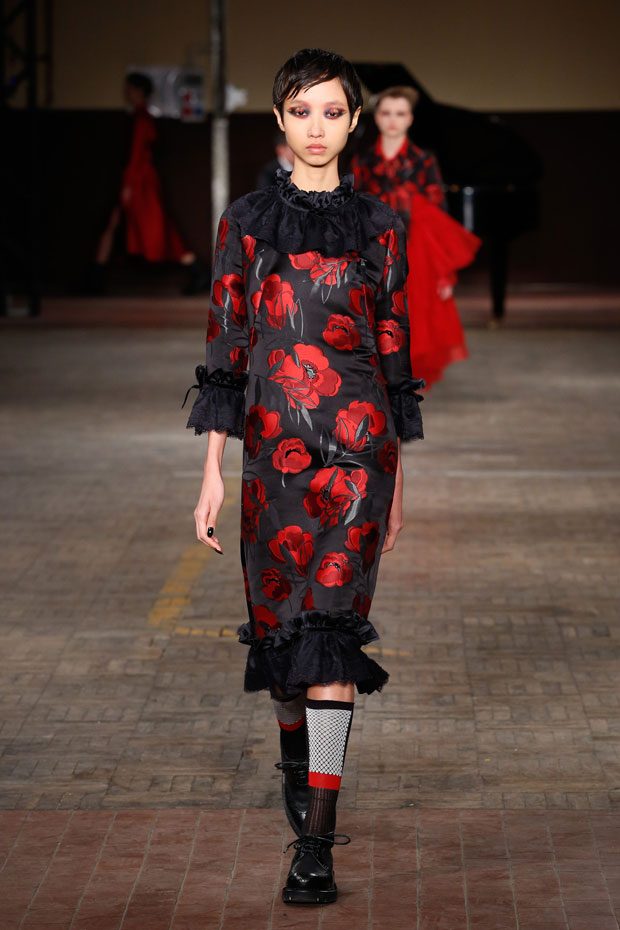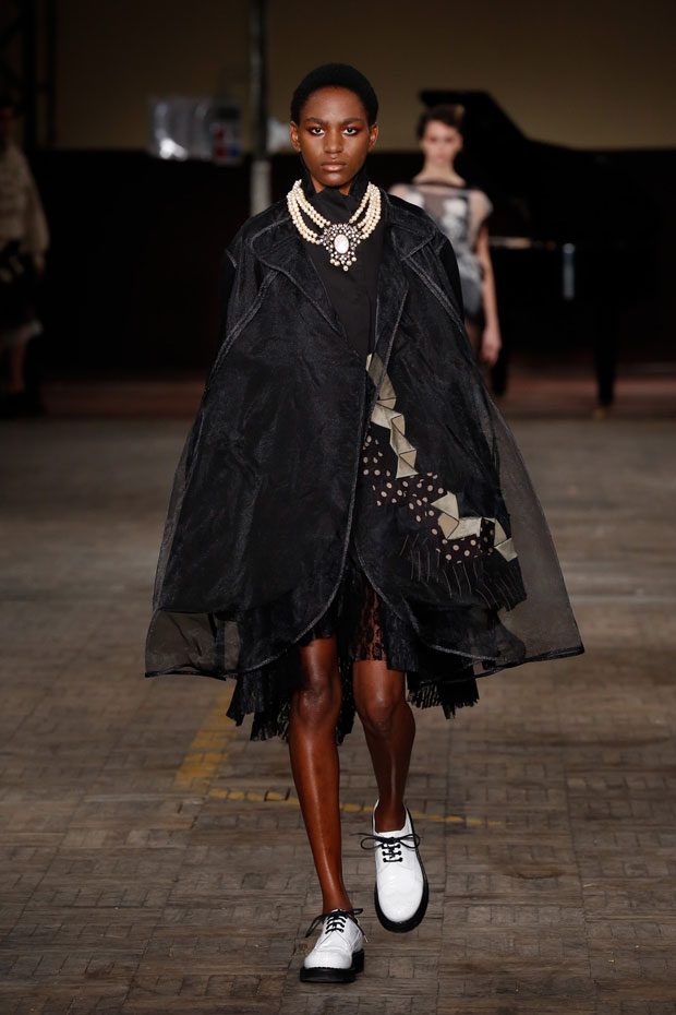The story of nostalgia and art is mixed into the fabric of the Antonio Marras fall winter 2018 collection, which comes as a thrill of every collection by Mr Marras. Coming down as a mid century vintage theme, the looks spotlight uptown girls who are elegant in their ankle length dresses, combined with flat shoes easily borrowed from the menswear wardrobe, and glamorous lace and printed detail adorned coats.