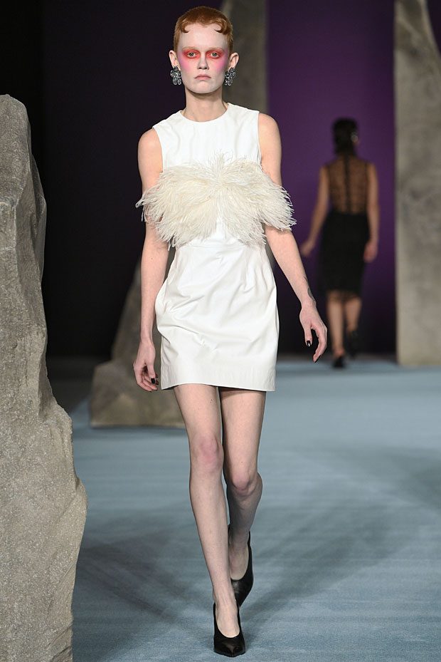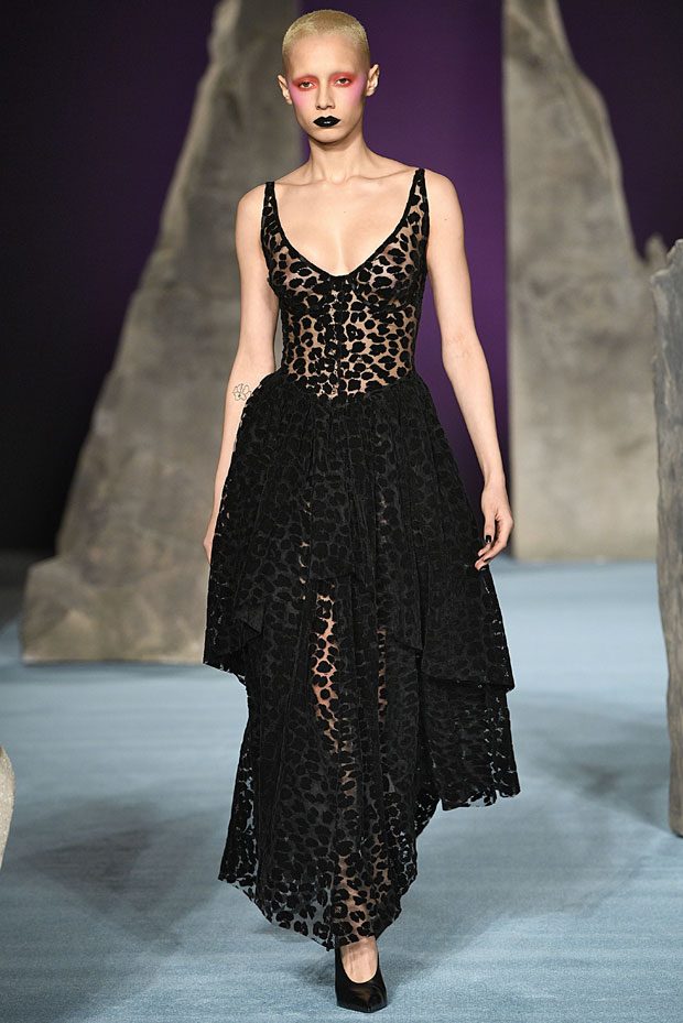 Connecting with her environmental bloodlines and natural heathen impulses, she further tapped into a dark folklore direct from Mother Earth and was re-born as a prehistoric pagan. Agnostic, blasphemous and sinful, yet all the while intoxicatingly bewitching, she case aside her lavender corduroys, and Patagonia style outerwear and embraced her inner necromancer. A sorceress, a soothsayer, and an enchantress so sexy she danced with the devil in the pale moonlight whilst playing his harp from hell. Replete in sheer tulle frocks flocked in barbed wire, her bosoms emblazoned with feathers like a busty phoenix rising from the ashes of the bonfire she previously danced among. This was Nancy Down from The Craft attending the high school prom in her nightmare dress of dreams. – from Ashley Williams