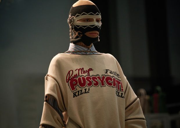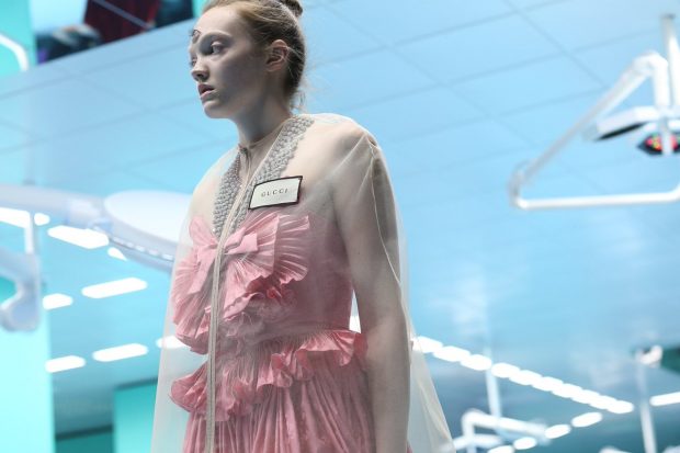 Gucci presented its Fall Winter 2018 collection during the first day of Milan Fashion Week in a brand’s Milan headquarters, modelled after an operating room. Models walked the runway carrying the exact replicas of their own heads, dragon-like creatures, snakes, as well as the lot of unusual headwear.